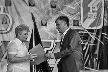 Президент напомнил страницы славной биографии трудового коллектива завода-труженика, который внес весомый вклад в создание и становление республики и укрепление ее экономики. В 1992 году рыбницкие металлурги составили костяк батальона народного ополчения и приняли самое активное участие в защите ее независимости. Евгений Шевчук поблагодарил ветеранов труда и защитников Приднестровья за их трудовой и ратный подвиг и пожелал им веры, надежды, терпения, духовного развития и благополучия.