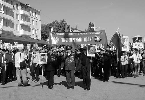 Наибольшую часть колонны – более 200 человек – составили потомки героев-фронтовиков. Все они в руках несли портреты своих отцов, дедов, прадедов. Школьники города развернули 25-метровую георгиевскую ленту. Ветеранов Великой Отечественной войны на митинг доставили на автомобилях.