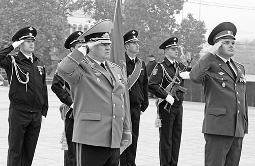 После завершения церемониала на Мемориале Славы в главном управлении внутренних дел г. Тирасполя открылось торжественное собрание. Начальник столичного ГУВД полковник Александр Лещинский поблагодарил коллег за службу, высказав особую признательность ветеранам советских и приднестровских правоохранительных органов. Опыт старших поколений, по его мнению, незаменим и сегодня, в условиях текущей криминогенной ситуации, требующей поиска более эффективных подходов к борьбе с преступностью, постоянного совершенствования стратегии и тактики противодействия криминалу.