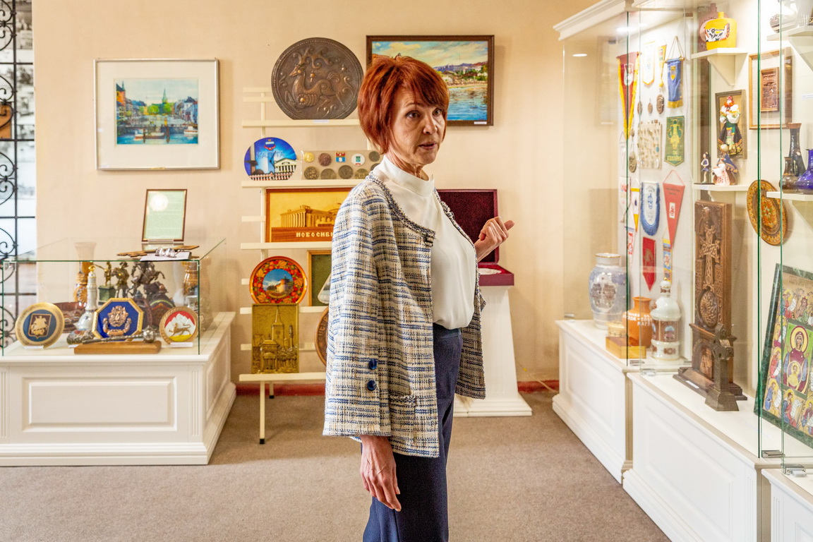Среди экспонатов есть и привезенные из стран дальнего зарубежья. Это подарки городов Сантарен (Португалия), Ашдод (Израиль), Гавана (Куба), Тронхейм (Норвегия) и многих других.