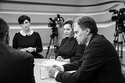 Разговор с Президентом ПМР Евгением Шевчуком в рамках программы «Журналисты приглашают» продлился около двух с половиной часов. За это время глава государства затронул многие темы – перспективы выхода из нынешнего экономического кризиса, финансирование зарплат и пенсий, антикризисные меры Правительства, работу госпредприятий, взаимоотношения с Молдовой, Украиной, Россией и ЕС, вопрос информационной безопасности, работу «Тиротекса». Отвечая на вопросы журналистов, Евгений Шевчук не исключил, что будет баллотироваться в будущем на пост Президента.