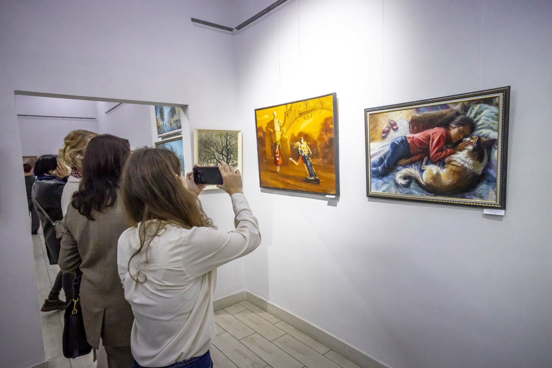 Речь о выставке 66 картин известного приднестровского художника Василия Рудяги «Тирасполь – город на Днестре», где вместе с творцом можно проследить, как менялся наш с вами любимый город с 1987-го по 2025 год. Впрочем, не на городских видах и даже не на изображении набережной остановился взгляд автора этого «путеводителя» по выставке. Почувствовав сопричастность к тому, что изображено на полотне, взгляд журналиста застыл на картине под названием «Сон после утренней прогулки». На ней изображена девочка-подросток вместе с бело-рыжего окраса собакой. Позже узнали, что эта девочка – дочь художника Маша, а пёс – их друг.