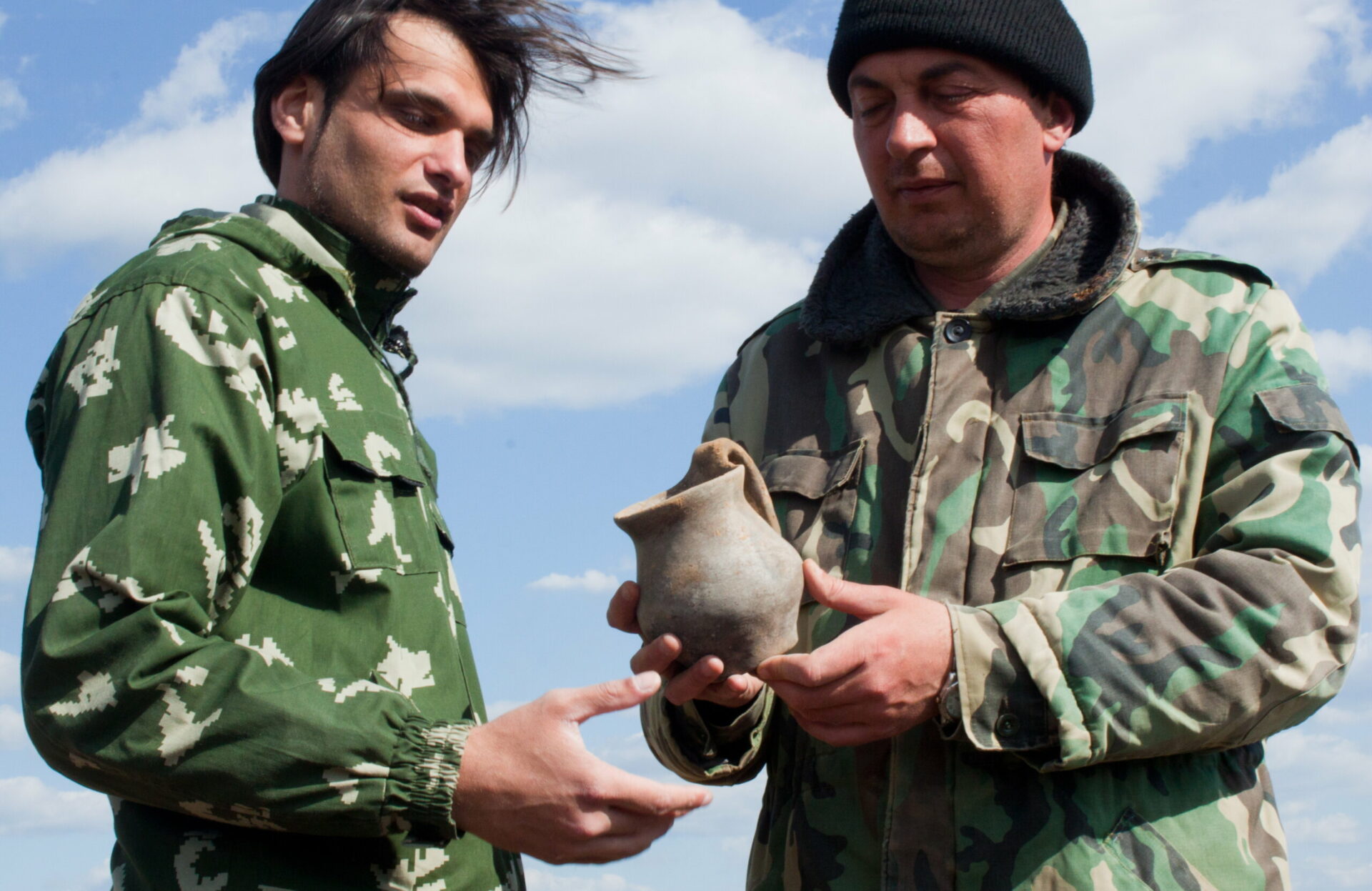 Возвращаясь к скифам, отметим: на примере могильника у с. Глиное ученые могут проследить трансформацию скифской степной культуры на протяжении нескольких столетий. Это дает возможность составить более комплексное представление, понять тенденции. Среди таковых – переход скифов к оседлости, причем не повсеместный, а именно в данном регионе, что говорит о благоприятных условиях для жизни. Дело касается также интенсивных культурных контактов. Так, из погребения на наших глазах был извлечен сероглиняный кувшин, пролежавший там, рядом с костяком, свыше 2000 лет. Это изделие, скорее всего, было изготовлено фракийцами, соседями скифов. С незапамятных времен Приднестровье служило зоной интенсивных культурных связей, местом, где сталкивались, соприкасались народы и цивилизации.