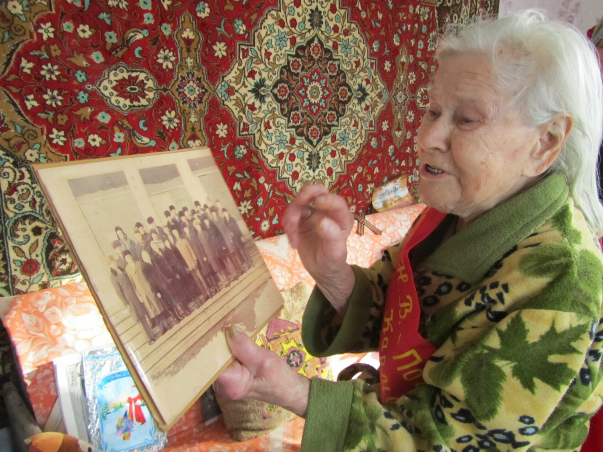 Я тут же вспомнила, что судьба с ней меня уже сводила. Впервые познакомилась в 2015 году, когда ей, вместе с другими ветеранам района, вручали юбилейную медаль «70 лет Победы в Великой Отечественной войне 1941-1945 гг.». Тогда я вместе с делегацией гостей из России и руководством Григориопольского района объехала 12 фронтовиков, партизанов, подпольщиков, тружеников тыла, чтобы передать награды и поздравления по случаю знаменательной даты. Ветераны в свою очередь благодарили за оказанное внимание, память о военных событиях и их подвигах. Они с радостью играли на баяне, читали стихи, рассказывали о боевом пути, делились воспоминаниями, улыбались, шутили, приглашали на свои юбилеи.