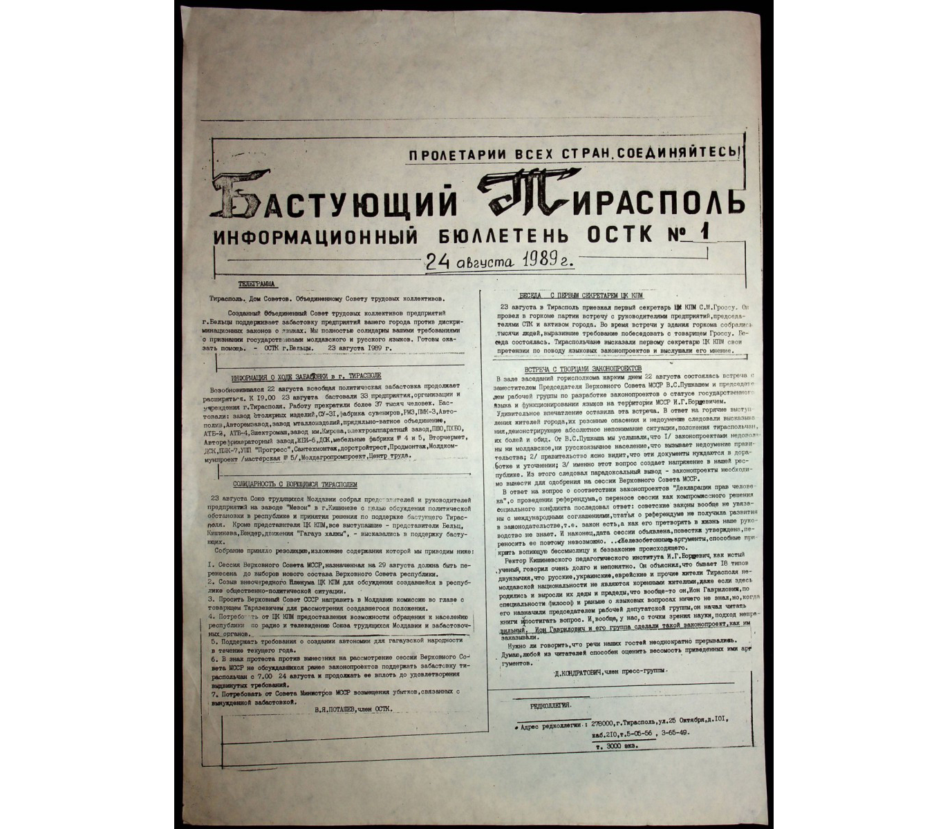 Когда 21 августа 1989 года на базе Тираспольского ОСТК был создан забастовочный комитет, ситуация с отсутствием информации о его деятельности обострилась (местные СМИ всё более становились «средствами массовой дезинформации», извращавшими позиции бастующих коллективов). Чтобы правдиво и оперативно информировать население о целях политической забастовки и ее ходе, о решениях забастовочного комитета, создавались первые информационные бюллетени.