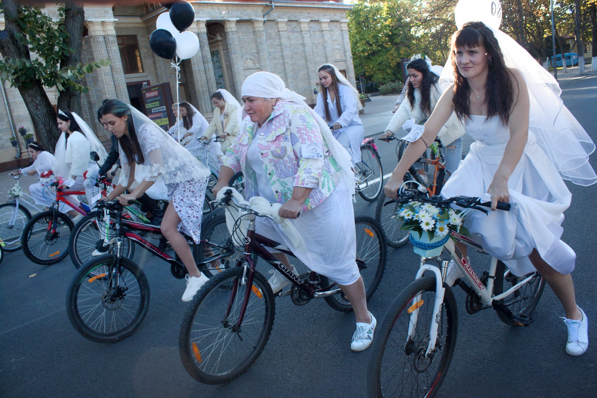 Дисциплинированные, благовоспитанные бендерские невесты стали прибывать на стартовую площадку заблаговременно. Все чин чином – в затейливых, разнообразных платьях, на велосипедах, а не на каких-нибудь там «лексусах». С пышным подолом пришлось, конечно, помучиться, иначе цепью бы зажевало (выражение «платье на прокат» впервые было воспринято буквально).