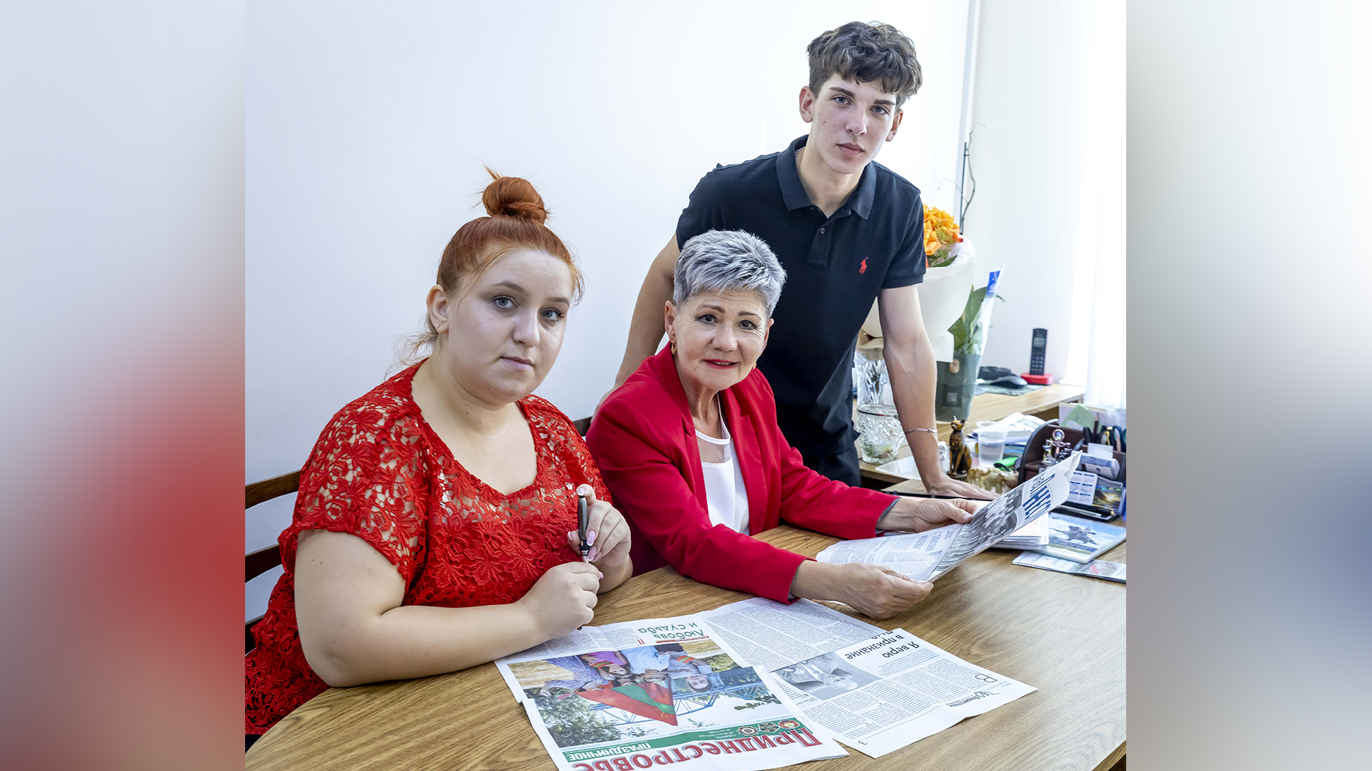 Слева направо: учитель истории Надежда Калошина, директор Татьяна Невская и ученик Назар Манкаш./Фото Виктора Громова.