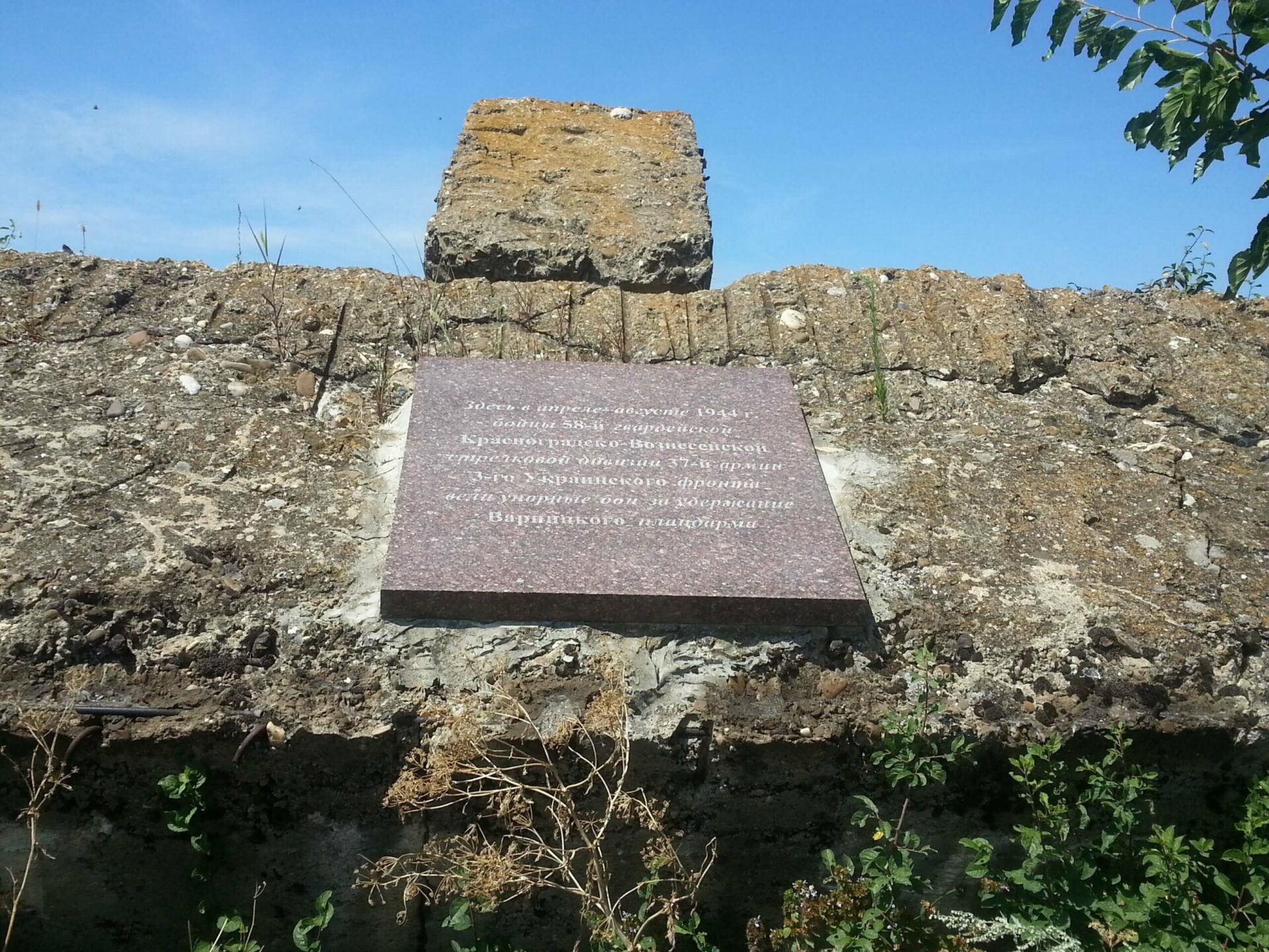 На одном из бетонных сооружений в 1972 году были установлены мемориальные плиты с надписью «Здесь в апреле-августе 1944 г. бойцы 58-й гвардейской Красноградско-Вознесенской стрелковой дивизии 37-й армии 3-го Украинского фронта вели упорные бои за удержание Варницкого плацдарма» на трёх языках – русском, молдавском и украинском, после событий 1992 года уцелели две – с текстом на русском и молдавском языках. Шесть лет активисты «Гражданской позиции» следят за их состоянием и за территорией вокруг ДОТа.