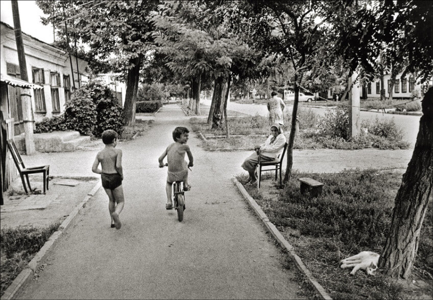 Итак, мы стоим и запросто разговариваем с живым классиком. Михаил Иосифович рассказывает, что выше, на Луначарского, когда-то жил с родителями вот в таком, старом, типичном по тем временам доме. Кварталы по Карла Маркса, Пушкина, Луначарского, Восстания, Горького – его фотографическая Мекка. Здесь в 70-е и 80-е были сделаны лучшие снимки: сосед Лева, сапожник Леня, колоритные бабушки, родившиеся ещё до исторического материализма, босоногая детвора, ушедшие в землю саманные стены, забеленные за ненадобностью окна («Автопортрет»). «Мир изменился, – констатирует Михаил Иосифович, – изменилась и фотография». Сегодня мало кто понимает язык черно-белой классики, требующий специального изучения, сопереживания, точно так же, как язык балета, оперы…