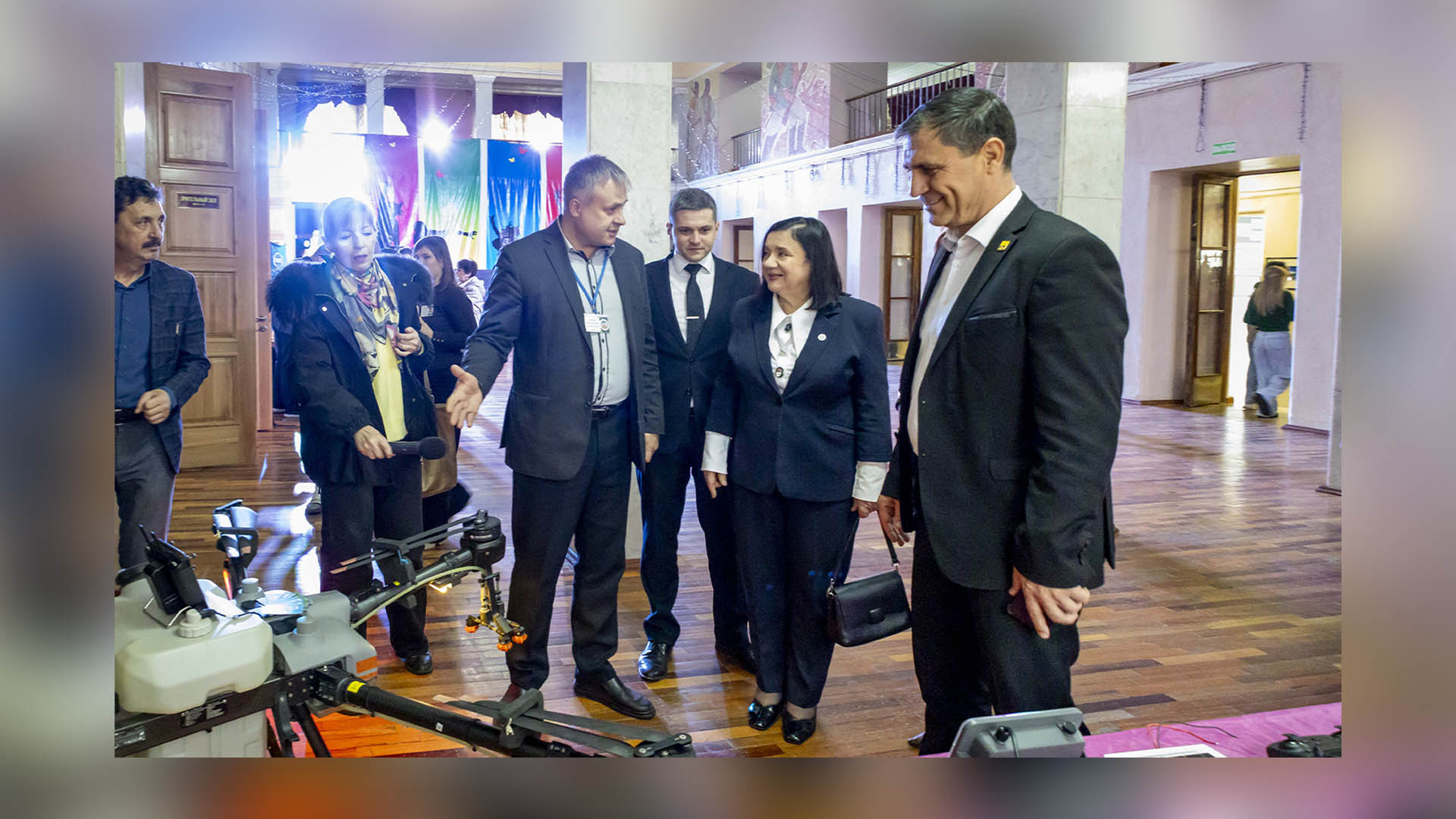 В фойе ДК им.Ткаченко была развёрнута выставка технологических разработок юных участников, на которой в большом количестве были представлены дроны, автоматизированные системы, простейшие роботы, проекты на базе искусственного интеллекта и много другое. Здесь же разработчики подробно разъясняли предназначение этих устройств, их технические характеристики и возможные области применения. Выставка вызвала живой и неподдельный интерес у участников форума, они пробовали управлять устройствами и задавали интересующие их вопросы.
