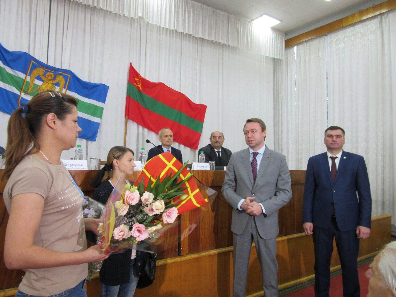 Перед началом мероприятия глава Рыбницкой госадминистрации Виктор Тягай сообщил, что городом приобретено ещё две квартиры для сирот. Под аплодисменты присутствующих ключи от квартир были вручены Галине Бондаревой и Светлане Филипповой.