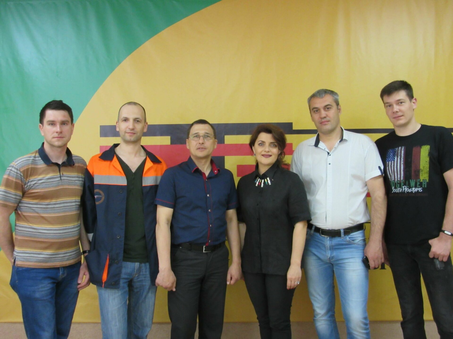 На фото: Слева направо – слесарь КИП и А Андрей Анненков, инженер АСУТП Юрий Мельник, директор филиала Александр Тищенко, начальник службы диспетчерского управления СДУ Елена Красовская, главный инженер филиала Алексей Вербецкий, инженер-программист Андрей Муляр.