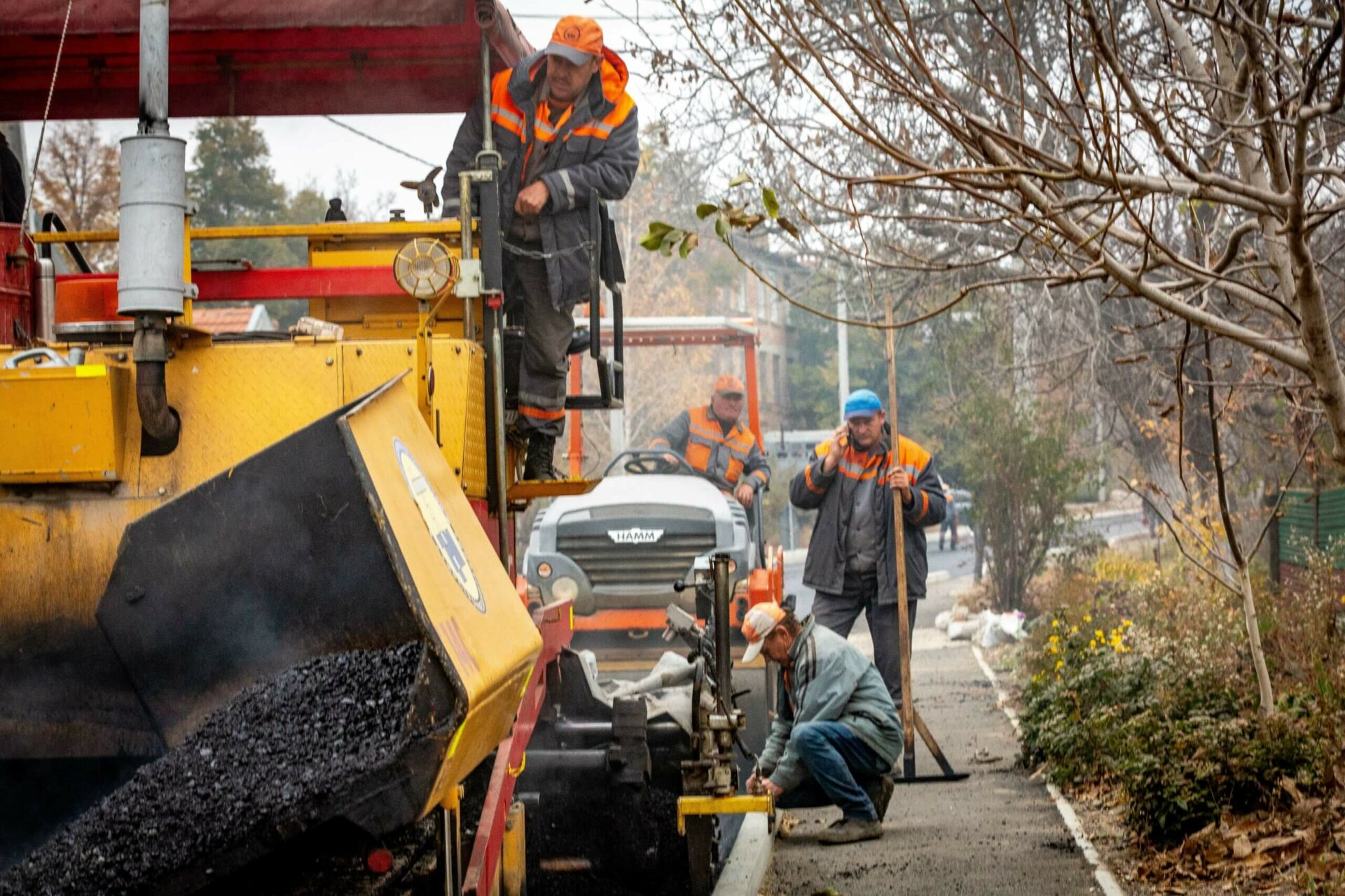 «Раньше никто старое покрытие не снимал, сейчас срезается слой асфальта. Перед укладкой новых слоев натягивается струна с отметками. Она дает направление асфальтоукладчику. Ультразвуковой датчик считывает информацию и передает на пульты, и дорога получается ровно по уровню», – делится технологией прораб «Тирстроймеханизации».