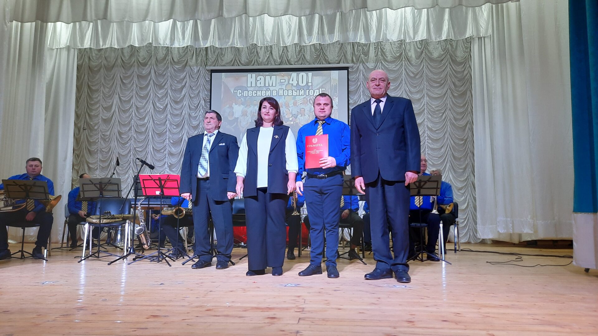 «С песней в Новый год». Такое название носило яркое мероприятие, которое прошло в районном Доме культуры и было посвящено 40-летию народного духового оркестра РДК. Вполне заслуженно в этот день чествовали коллектив, творчество которого остаётся для жителей Каменского района одним из самых востребованных, несмотря на все веяния моды. Оркестр всегда украшает своим творчеством многие мероприятия в городе и районе, неоднократно участвовал в различных конкурсах и фестивалях, занимая там призовые места и тем самым прославляя каменский край далеко за его пределами.