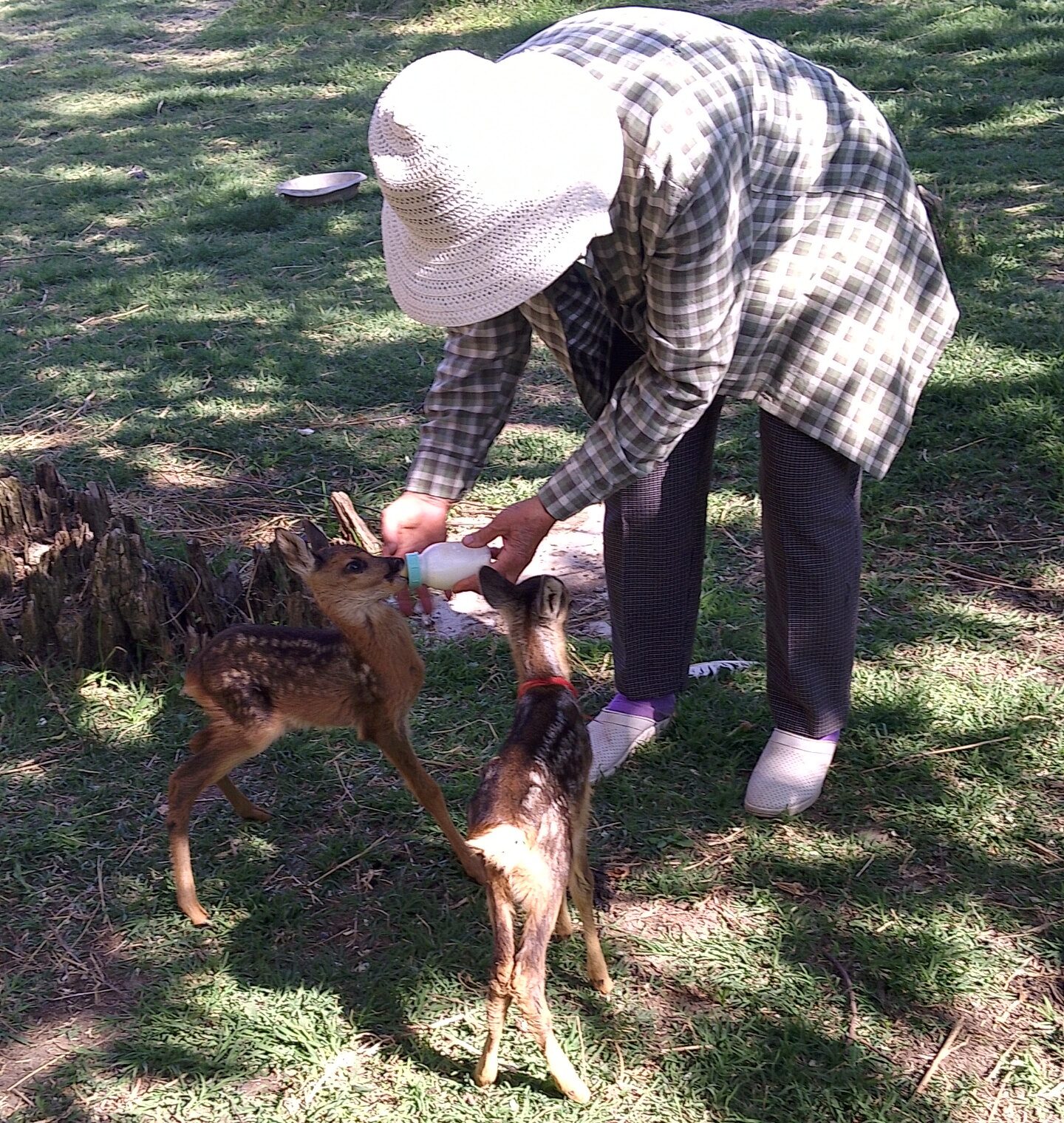 А самое милое и завораживающее зрелище – хозяйка зоопарка Светлана Бильская кормит из бутылочки молоком новорождённых косуль. Их мама Даша, которая находится здесь же, отказалась их кормить.