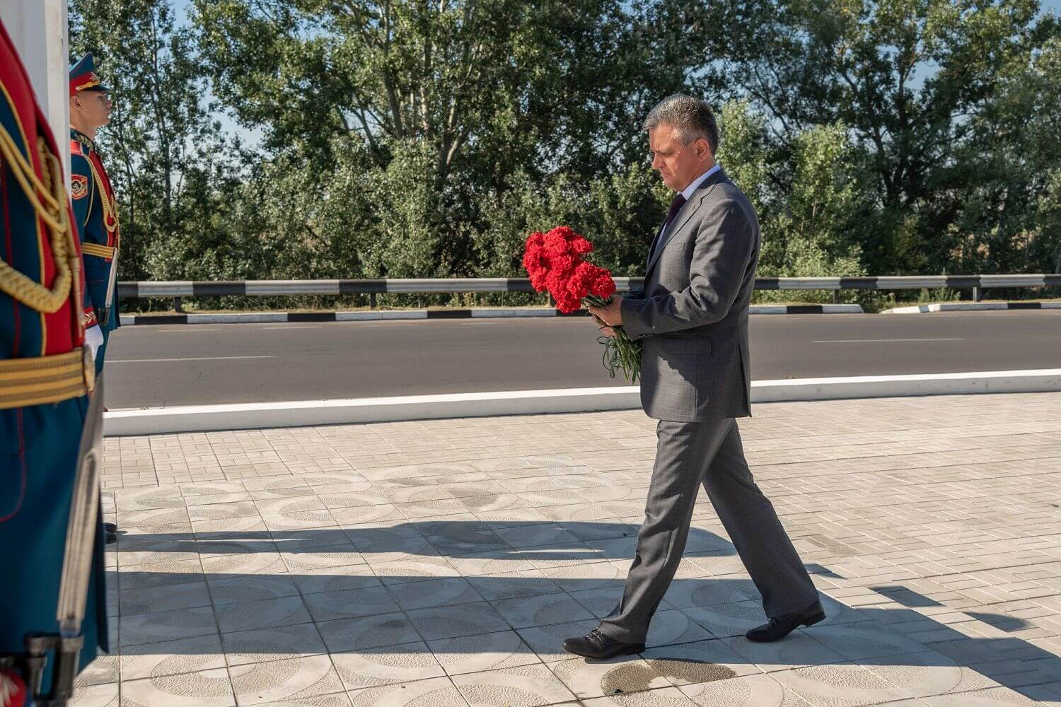 Глава приднестровского государства положил гвоздики к подножию Арки Мира «Блаженны миротворцы», установленной в 2017 году между Тирасполем и Бендерами. Считается, что сквозь крылья, увенчанные православным крестом, проходит дорога мира, а колокол, расположенный внутри арки, символизирует течение времени. О том, что время не властно над памятью благодарных приднестровцев, говорил Вадим Красносельский. По его словам, уникальная миротворческая операция, действующая на берегах Днестра, за 28 лет не утратила актуальности и ценности, и по сей день российское военное присутствие остается базовой составляющей миротворчества в Приднестровье, особенность которого заключается в том, что в состав МС входят представители сторон конфликта. Важнейшим итогом Президент назвал сохранение мира. Рассуждения о том, что операция должна быть свернута либо переформатирована, Вадим Красносельский считает надуманными и неуместными. В качестве иллюстрации Президент напомнил о недавних провокационных действиях комбатантов Молдовы. Проблема остается, приднестровско-молдавский вопрос по-прежнему открыт, потому о выводе российских миротворческих сил не может идти и речи, подчеркнул Вадим Красносельский.