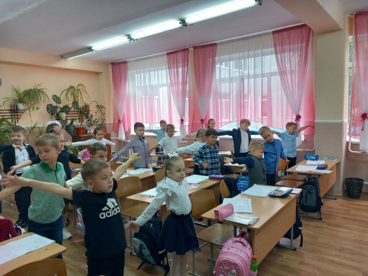 Организованно выходят на физминутки учащиеся дубоссарской русско-молдавской школы №7.