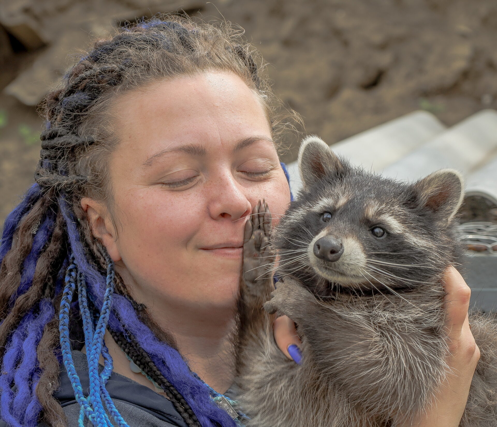 А начиналось все в 2018 году с появления в семье Валентины и Глеба енота Дуни. «Идеи о зоопарке тогда еще не было. Просто захотелось завести экзотического домашнего питомца. Затем появился енот Грю», – рассказывает Глеб и ведет к клеткам, где временно обитают животные, а именно: еноты, белки, лисы и совы. Нас сопровождает трехцветная пушистая кошка по кличке Хрустя. Она всегда гуляет сама по себе, но никогда не убегает. Подходим к клетке с тремя енотами – это дети Дуни и Грю. Селя, Лысый и Беляш рады нас видеть. Протягивают лапки, здороваются. Тычут мокрыми носами в руку. «Они очень общительные, привыкли к вниманию. Из-за того, что временно Дом животных не принимает посетителей в связи с переездом и обустройством вольеров, наши питомцы скучают и всегда радуются гостям», – объясняет Глеб.