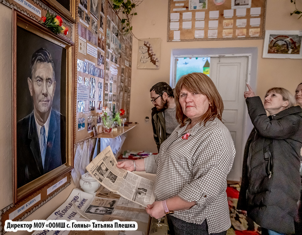 По улице Ф. Пономаря (к сельсовету ведёт ул. И. Канна) отправляемся в школу. Красивое двухэтажное здание чем-то напоминает дворянскую усадьбу. Директор Татьяна Плешко и учитель молдавского Татьяна Жосан проводят экскурсию. Спрашиваю в вестибюле у ребят: «Кто такой Пономарь?». Отвечают молниеносно: «Наш писатель!». Вот бы Фёдор Миронович услышал…