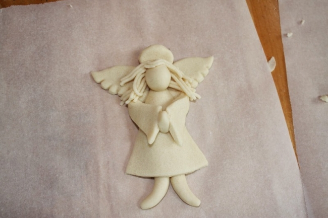 «Новый 1945 год встречали уже на свободной от немцев земле, – рассказывала бабушка. – После пережитого ужаса хотелось создать детям праздник. Ёлки не было, и я украсила ветку вишни ватой, будто снегом. Но где взять игрушки? Ещё в 1942 году немцы, обыскивая чердак, забрали их вместе с мукой. И я стала думать… Жить стало легче: давали крупы и немного муки, я пекла хлеб. Однажды увидела, что дети делают из мякиша шарики и едят. Я тоже тайком накатала хлебных шариков и слепила маленького ангелочка, подрумянила в печи, покрасила соком свеклы и прикрепила к веточке».