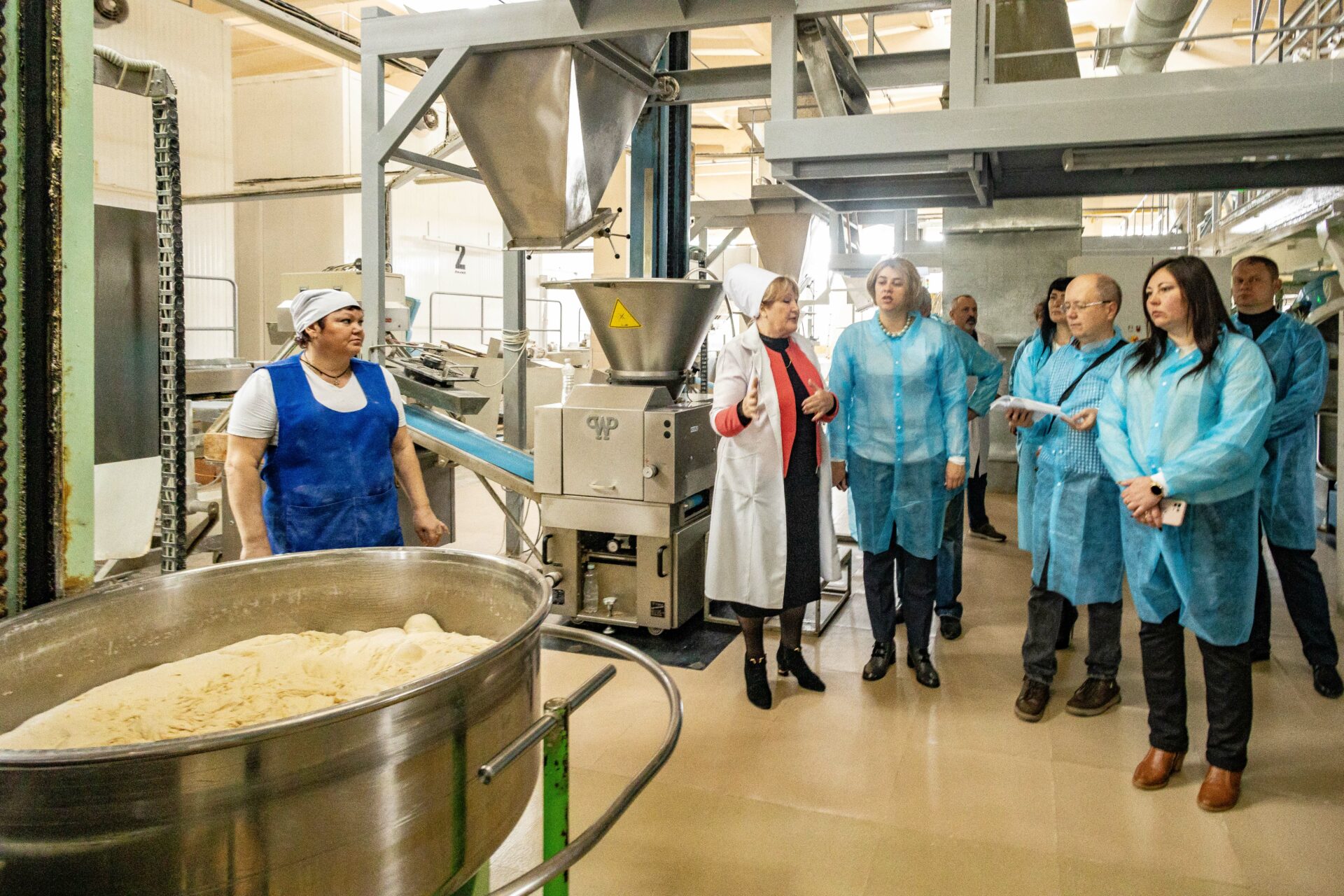 И вот мы вступаем в царство, пропитанное вкусным запахом хлеба. В первую очередь нам показали все этапы производства наиболее востребованного и самого массового в республике хлебобулочного изделия – фирменного батона. Конечно, каждому в мечтах хотелось бы есть тот чудесный хлеб, что готовится и в деревенской печи, старым добрым «кустарным» способом, но, увы, для современного горожанина это уже утопия. Чтобы накормить людей, пришлось доверить производство хлеба машинам. Теперь рецептура и все необходимые параметры заносятся в компьютер, управляющий процессами на всех этапах, а дело технологов – следить, чтобы не случалось никаких перебоев. Важнейший этап – замес теста, далее оно поступает на разделку, тоже автоматическую, но под контролем рабочих-тестоводов. Для предупреждения возможных отклонений также существует чеквейер (контрольно-динамические весы). После расслойки, раскатки и формования еще сырой хлеб поступает «на отдых», в расстоечный шкаф, где созданы комфортные условия для брожения дрожжевого теста перед его выпеканием. По словам Виктории Фалалеевой, это оборудование – настоящая гордость предприятия.