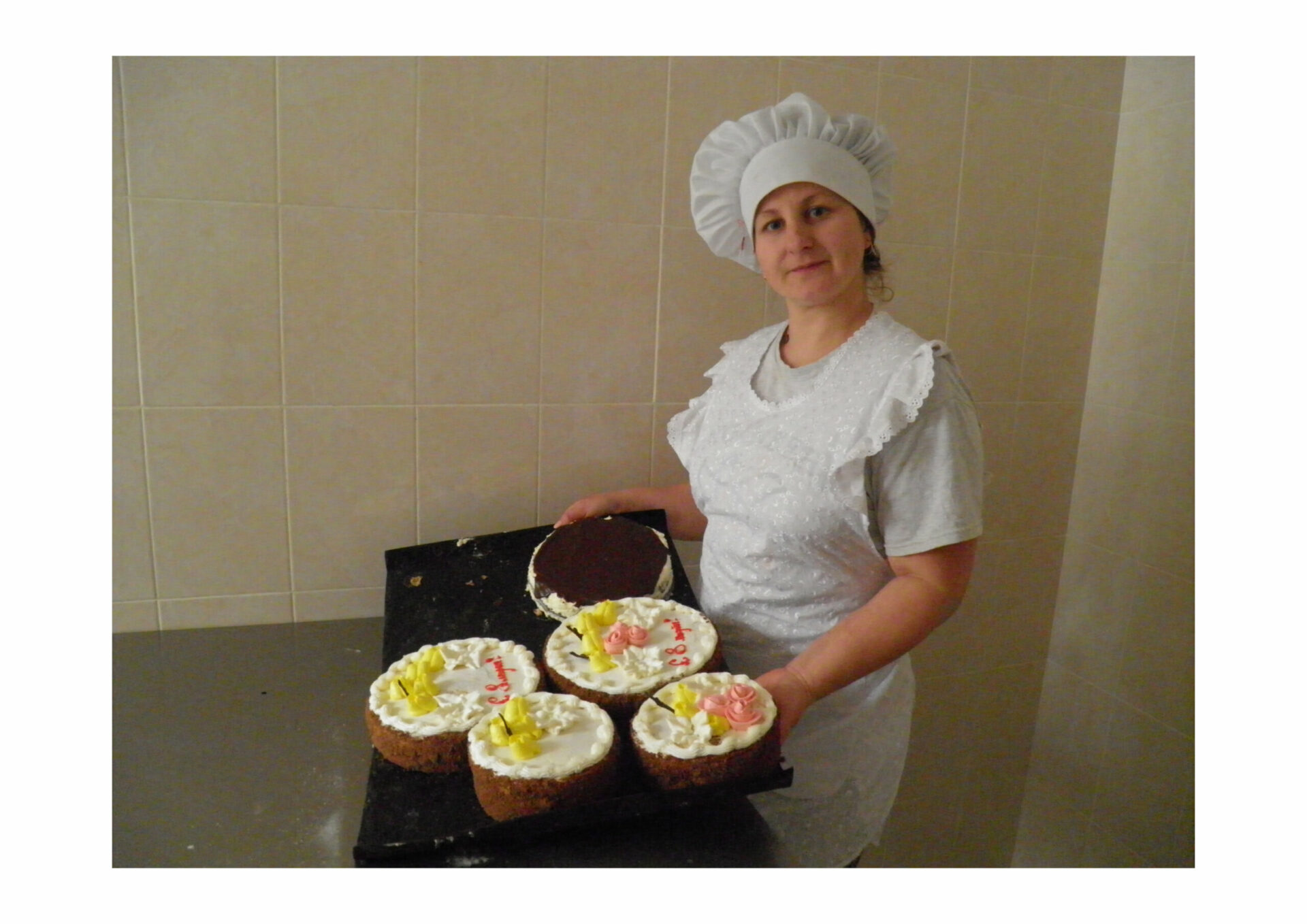С автомеханикой у Нади не сложилось, и она поступила на курсы повара-кондитера. Окончить учебу ей, к сожалению, не удалось, тяжело заболел и рано ушел из жизни ее муж. Юная вдова сильно горевала и не знала, как жить с разбитым сердцем и маленьким ребенком на руках. Постепенно взяла себя в руки, работала то поваром, то официантом, пока судьба не привела ее в кондитерский цех Днестровского муниципального городского управления торговли. Вот уже семь лет она трудится в этом профессиональном коллективе. Рано утром приходит в цех, замешивает тесто, делает крем и «сажает» на коржи роскошные масляные розы.