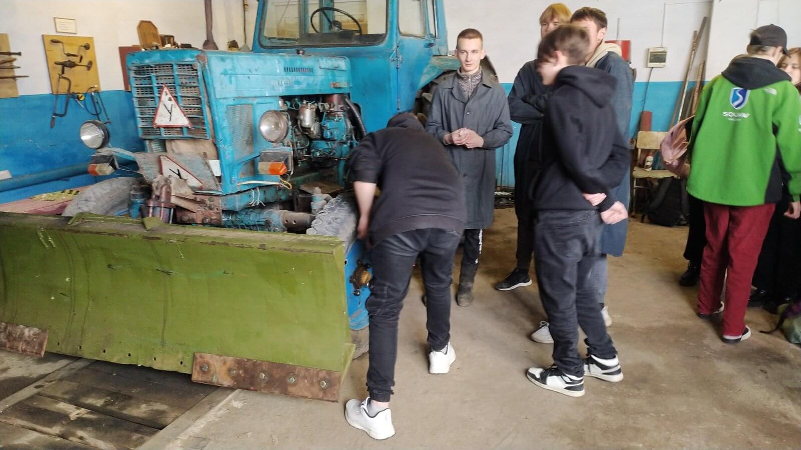 Как устроен трактор? Какие существуют виды и типы транспортного средства? Какие требования техники безопасности следует соблюдать при работе на тракторе? На эти и другие вопросы отвечали учащиеся группы №21 Максим Онуфриенко и Сергей Сергеев под руководством мастера производственного обучения Николая Михайловича Кожухаря. Также представители учреждения рассказали о преимуществах квалификации «Мастер-наладчик по МТП (машинно-тракторному парку)». Практическую часть, а именно: вождение транспортного средства, учащимся, к сожалению, показать не удалось ввиду погодных условий.