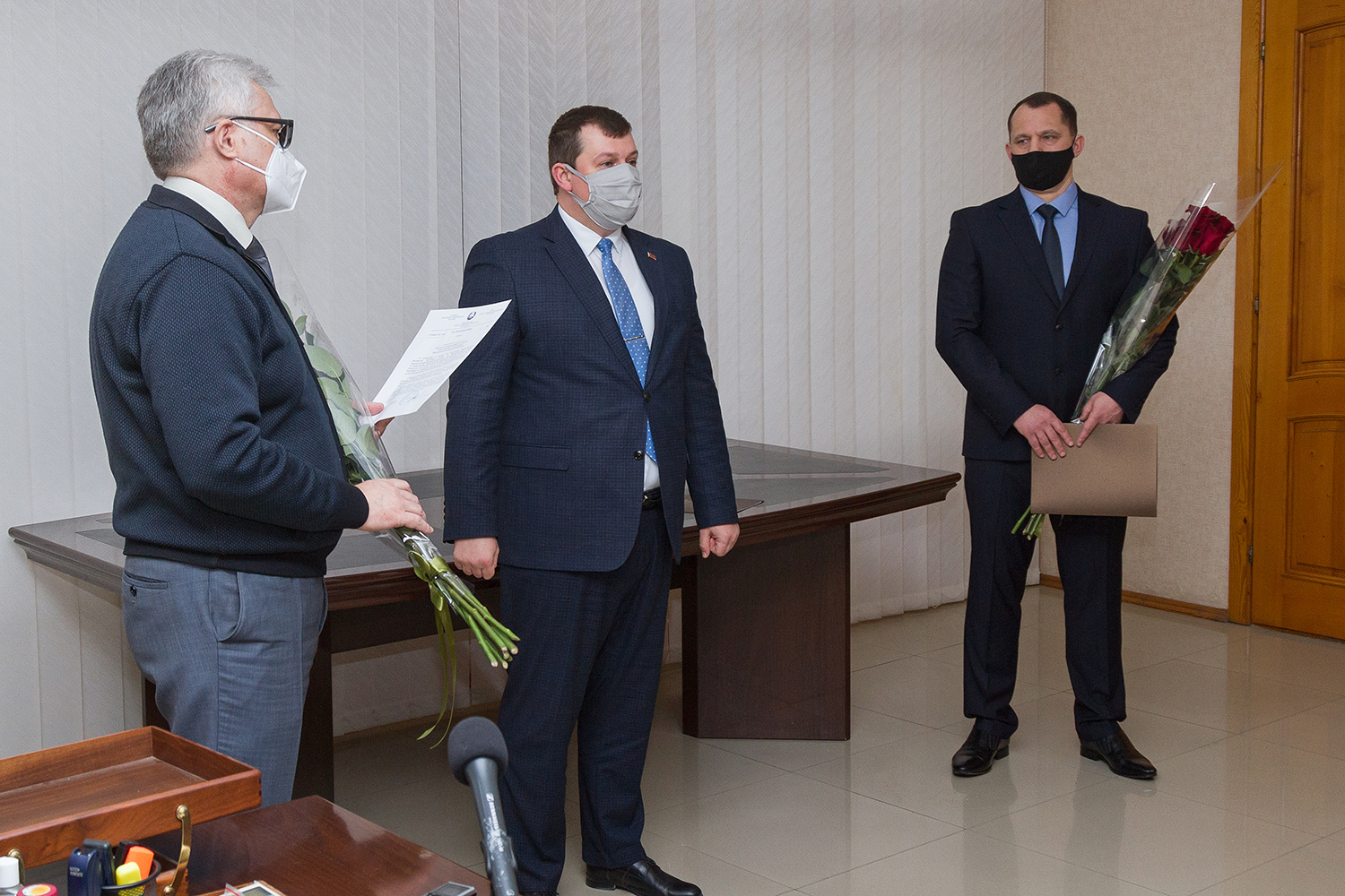 Вице-премьер Станислав Касап в министерстве цифрового развития, связи и массовых коммуникаций от лица Правительства поздравил Сергея Бабенко со вступлением в должность министра и представил его начальникам ведомственных управлений.