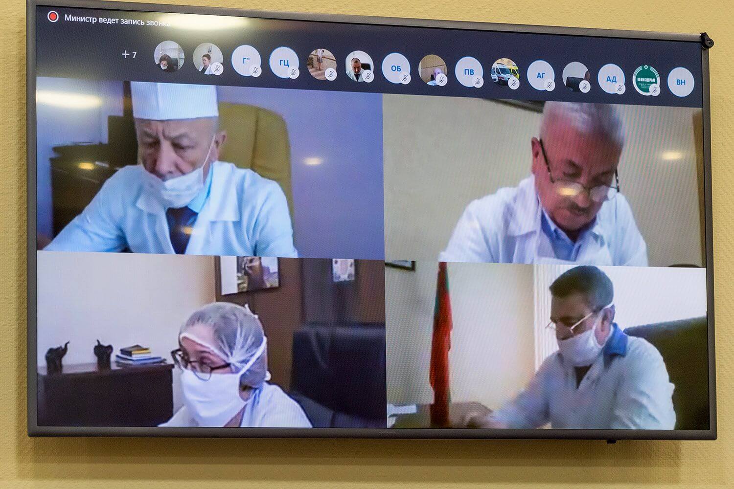 Глава государства пригласил к рабочему разговору руководство Администрации Президента, Правительства, министерства здравоохранения, а также медучреждений республики. Главврачи и руководители трех десятков больниц, поликлиник, госпиталей, медицинских центров и организаций фармакологической направленности участвовали в организованной Президентом дискуссии в режиме видеоконференции.