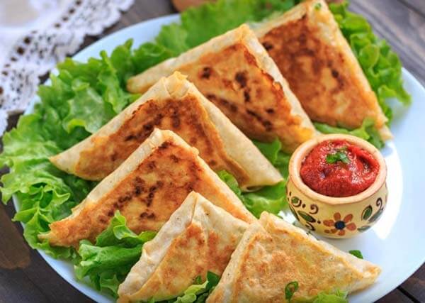 В моей семье треугольники из лаваша больше всего любят с мясом (куриным фаршем), творогом с зеленью и картошкой с грибами. Я предпочитаю такие конвертики со сладким ванильным творогом и изюмом или с вишней в собственном соку. А еще вкуснотища, когда внутрь завернут сыр или брынза, яблоки или тушеная капуста. Каждому – свое, но «так и эдак хорошо, так и эдак вкусно». Сладкие треугольники можно подавать со сгущенкой, вареньем, фруктовым салатом, взбитыми сливками. Соленые – с кетчупом, сметаной, соусом «Тартар». Итак, рецепт конвертиков из лаваша!