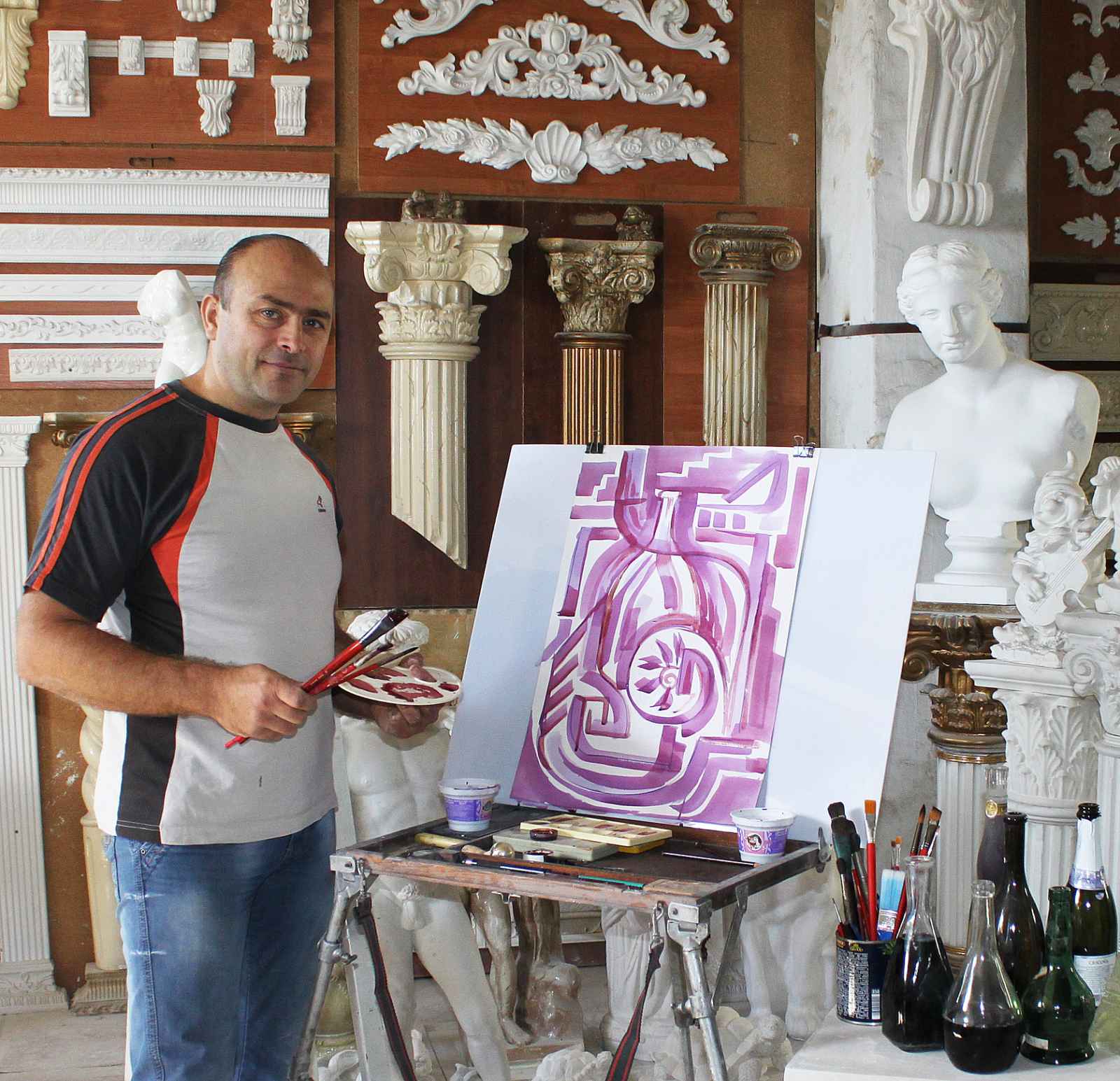 Роман Бричак, заслуженный работник культуры ПМР, бывший преподаватель Бендерской детской художественной школы им. В. Зюзина, а ныне дизайнер интерьера, потрудившийся над проектом ресторанов «Бастион» и «Бородино», может похвастать множеством увлечений, совершенствуясь в которых уже порядка тридцати лет, добился уровня мастера. В мастерской нашего героя большое количество наград и медалей, о которых Роман говорит: «Мне сказали, грамоты должны висеть, чтобы их было видно». Правда, скромный уголок, украшенный благодарностями, привлекает взгляд посетителя далеко не сразу: лепнина, десятки картин.