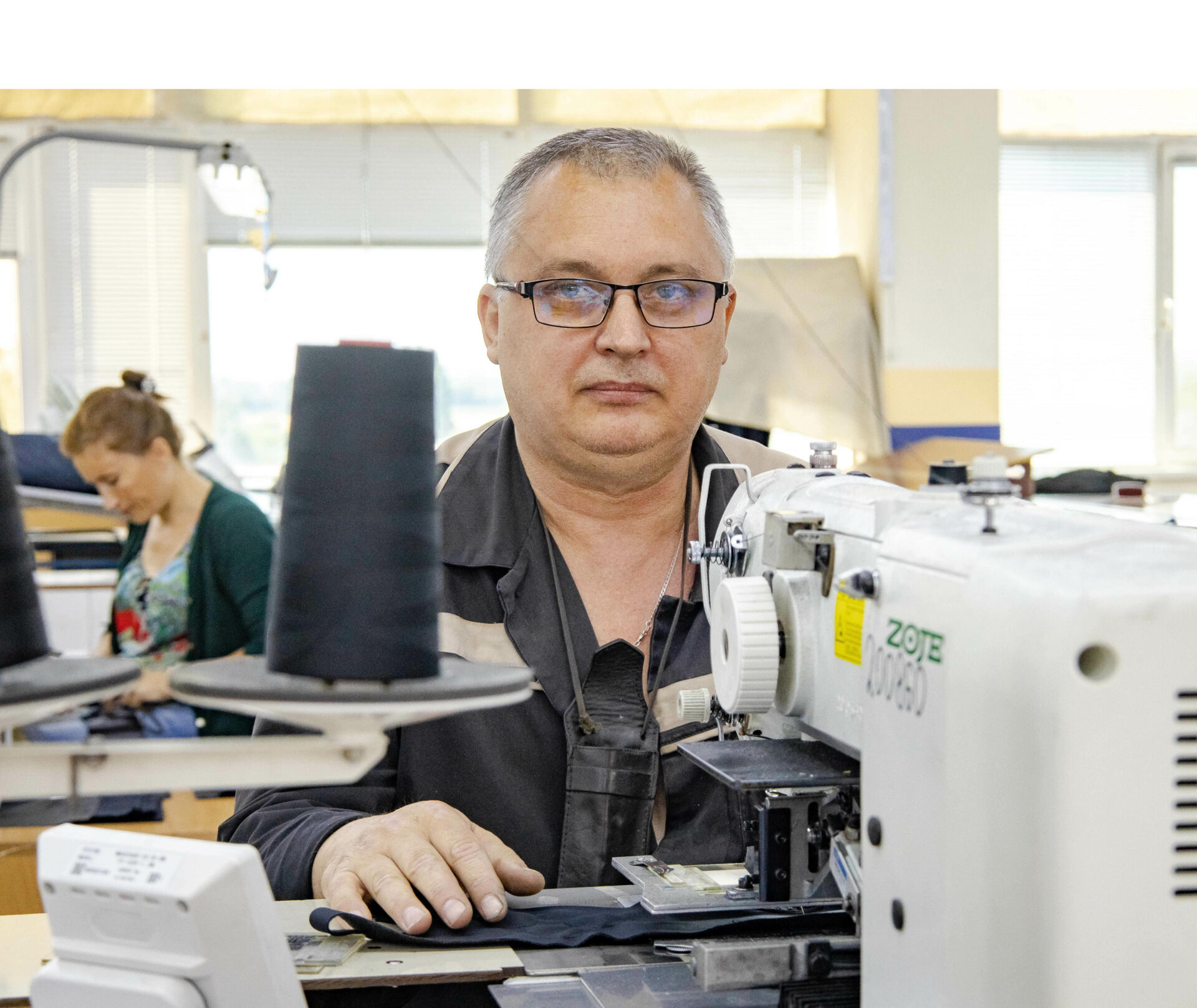 Швейный цех №2 фабрики «Одема». Разгар рабочего дня. Швеи вовсю трудятся, бригадиры лавируют между ними, переходя от одного стола к другому. Начальник энерго-механической службы Дмитрий Армаш проводит меня в самый центр цеха и знакомит с Игорем Падурой, бригадиром ремонтно-механического участка. Игорь Иванович занят наладкой какой-то машинки. Здесь для меня повсюду «какие-то» швейные машинки, на самом деле, как выяснится из беседы позже, каждая из них имеет свое название и свое предназначение. Каждая выполняет свою задачу на определенном этапе сборки изделия. У Игоря Ивановича на фабрике есть мастерская, где он воплощает все задумки в реальность. Но чаще его можно увидеть, как сейчас, в цеху. Здесь всегда нужны его помощь и смекалка, чтобы наладить ту или иную линию, ускорить или облегчить тот или иной пошивочный процесс.