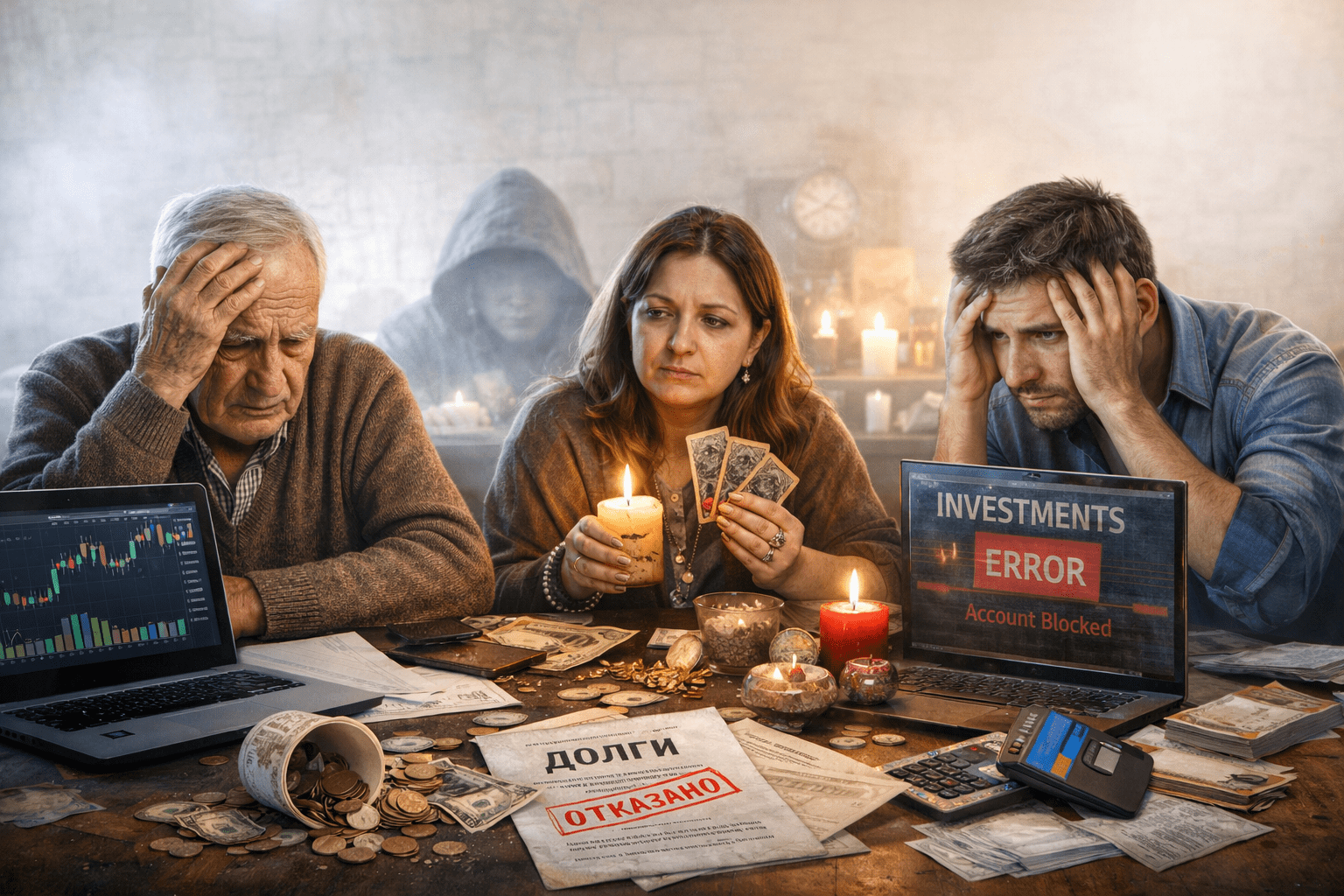 Три судьбы, три истории и одна общая ошибка – вера в лёгкий заработок. Пенсионер, женщина, ищущая помощи у экстрасенсов, и несостоявшийся инвестор. Все они столкнулись с мошенничеством, которое разрушает жизни, лишает людей сбережений и оставляет после себя только долги и разочарование.