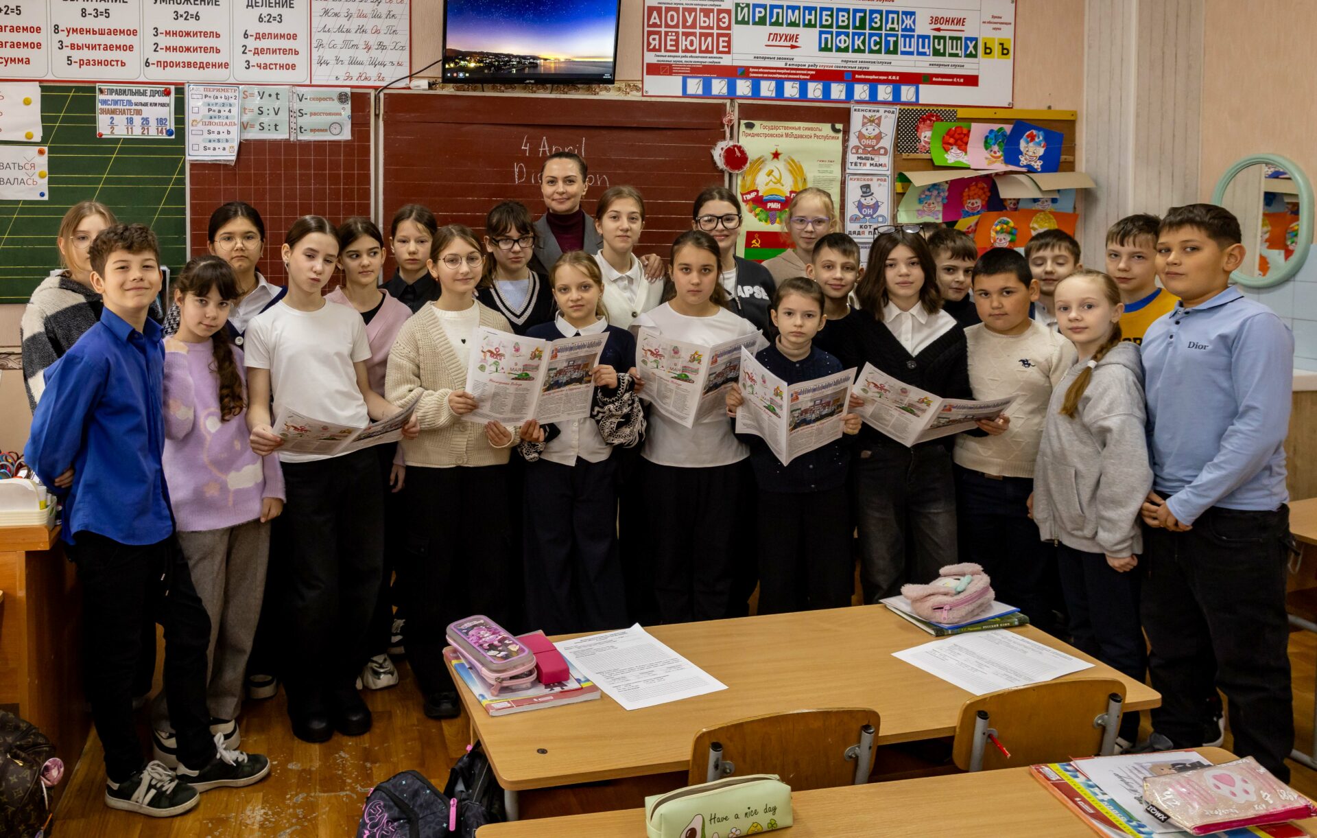 Творческая работа одной из учениц, Лауры Солтан, под названием «Листая страницы приднестровских газет», конечно же, сразу нас заинтересовала. Тем более что в качестве дополнительного материала к ней прилагалась выпущенная всем 4 «А» классом в цвете газета на тему Великой Отечественной войны. Подготовленная учениками, с участием классного руководителя и родителей и при поддержке приднестровской республиканской газеты «Адевэрул Нистрян», она как никогда актуальна в преддверии празднования 80-летия Великой Победы.