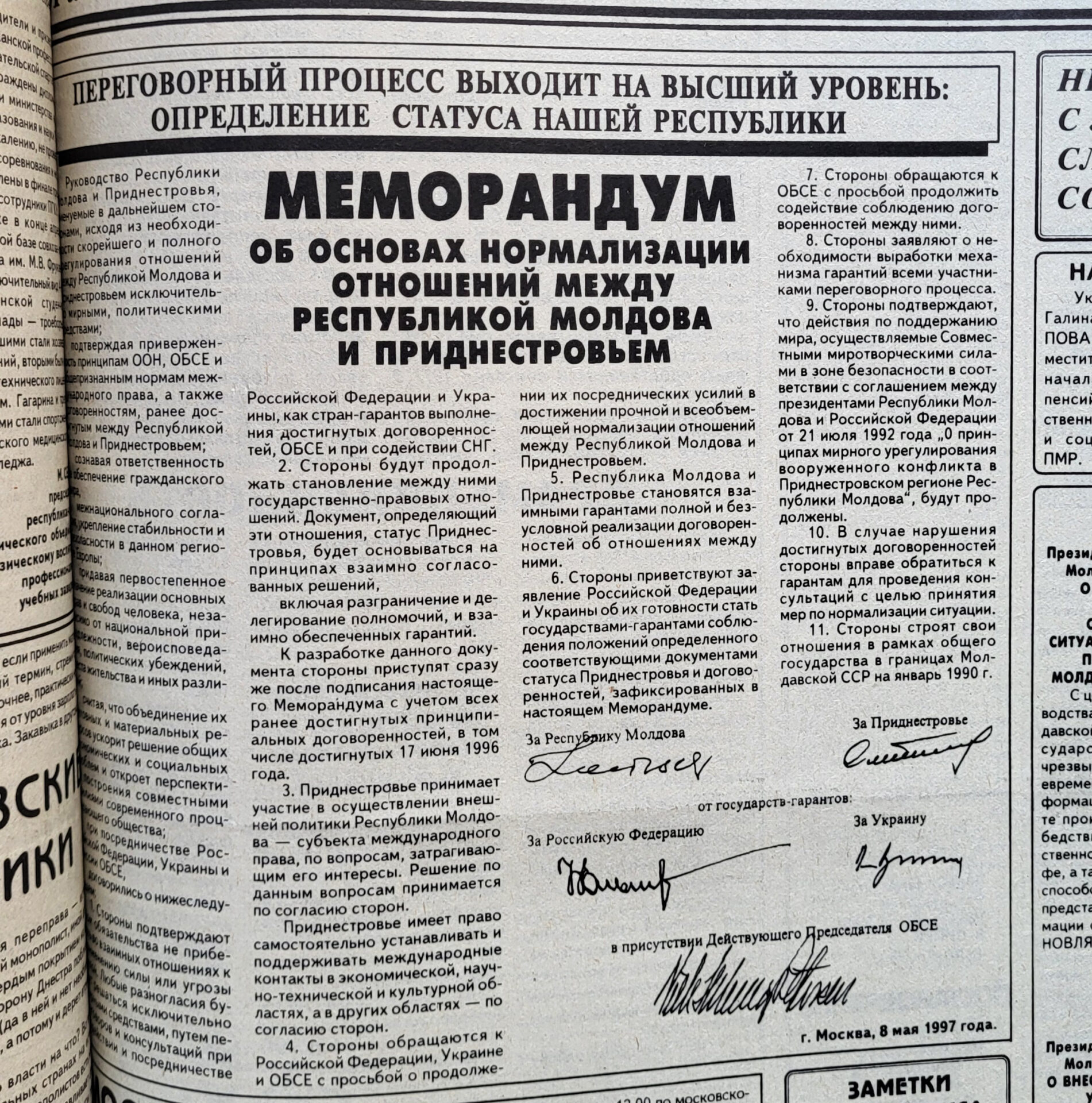 31 августа – день традиционной пресс-конференции. Во главе стола – Президент Игорь Смирнов и Председатель Верховного Совета Григорий Маракуца. Вокруг приднестровские и зарубежные журналисты. Вопросов звучало много, но так или иначе все они вертелись около одной главной темы: Мирча Снегур отказался подписать уже парафированный им Меморандум «Об основах нормализации отношений между Республикой Молдова и Приднестровьем» и этим заморозил мирные переговоры.