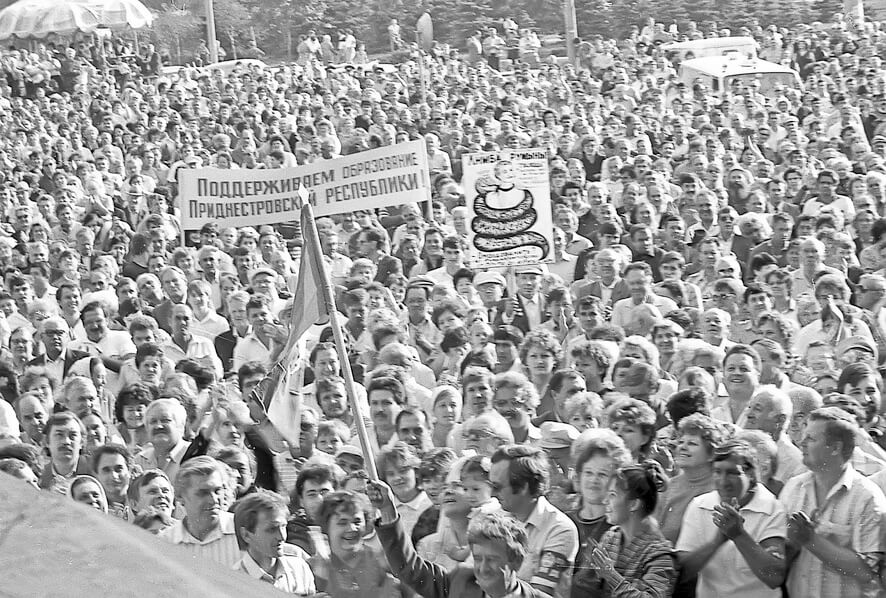 Фотохроника – надежный, проверенный способ погрузиться в эпоху. И вот один из исторических кадров: людское море, а в центре – транспарант «Поддерживаем образование Приднестровской республики!». Дата: 9 сентября 1990 г. Прошла ровно неделя после провозглашения Приднестровской Молдавской ССР на II Чрезвычайном съезде народных депутатов всех уровней. Фотограф запечатлел митинг в поддержку исторического решения. Неделя… всего неделя новорожденной республике. Какая потрясающая разница между этой неделей и красивой юбилейной датой «30 лет». Сколько пережито, несмотря на продолжающуюся молодость.
