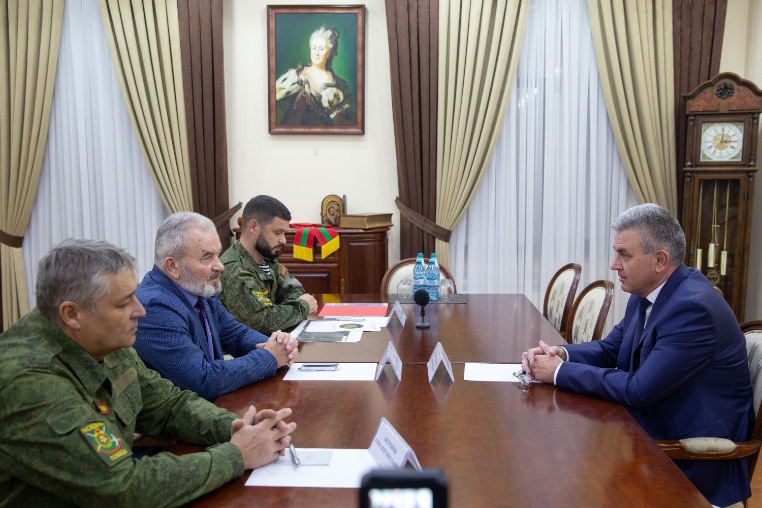 В рабочем кабинете главы приднестровского государства прошла встреча Вадима Красносельского с руководящим составом общественной организации «Наследники Побед».