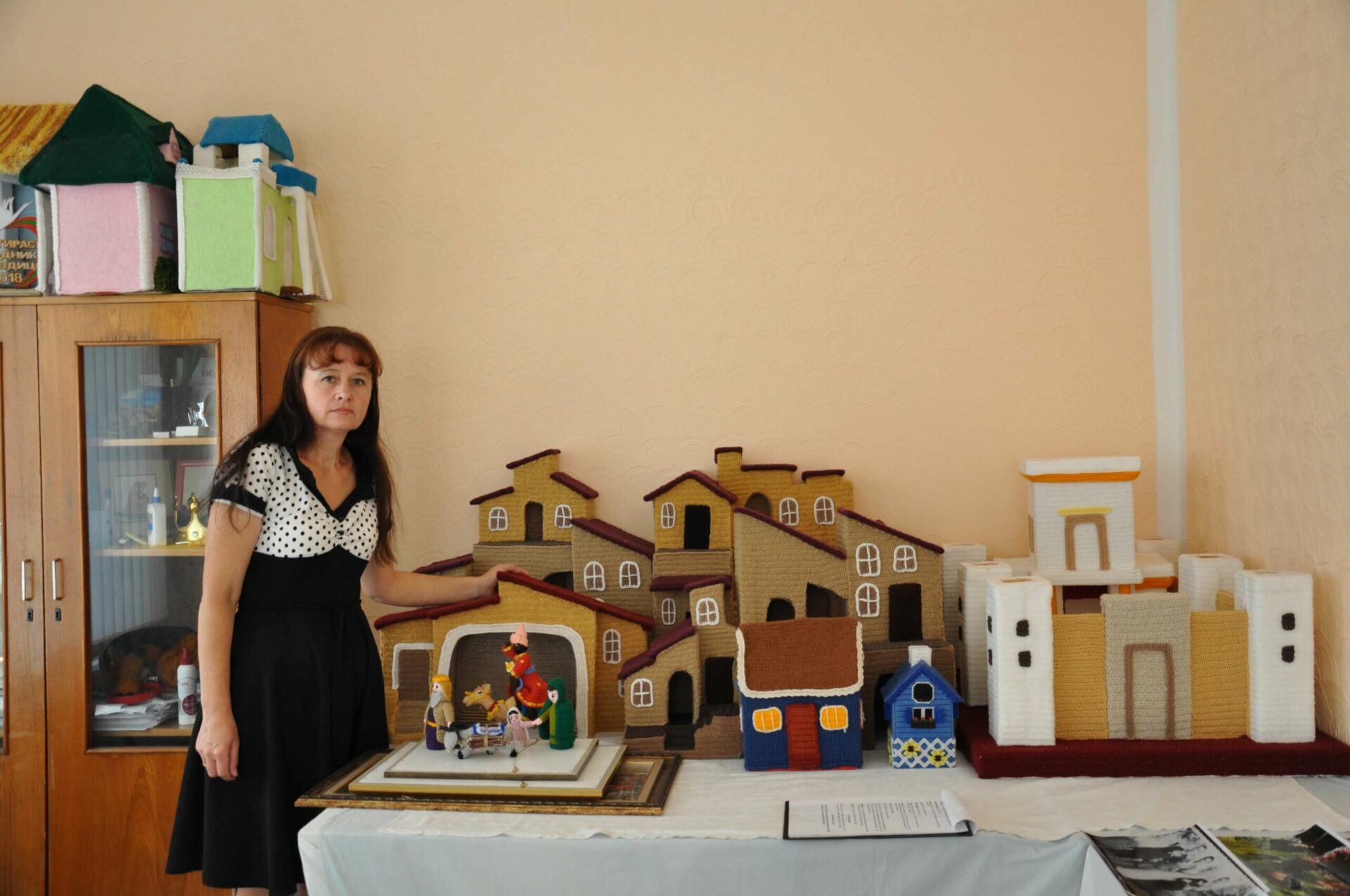 Совершить заочную экскурсию по знаменитому центру паломничества и туризма мне помогла… Думаете, наверное, историк или краевед… Совсем нет – это рукодельница из села Окница Наталья Кавтя, настолько талантливая, что сумела, основываясь на первоначальном, библейском варианте, связать крючком фигурки младенца Иисуса, Девы Марии и Иосифа, волхвов, простых людей, идущих на перепись, а также дома, животных и деревья, повозки с осликами – все то, чем привлекает Вифлеем христиан-паломников. И что очень важно – приобщила к выполнению этой объемной работы (только одна ее часть занимает целый стол) сельских ребятишек – участников образцового детского декоративно-прикладного кружка, который под ее руководством действует при окницком Доме культуры с 2014 года. Масштабно и впечатляюще. Если честно, такого я у нас в Приднестровье не видела нигде. «Этот сюжет – воплощение в реальность моей давней мечты, – рассказывает Наталья. – Работали мы над ним почти год. Значительными были и подготовительные мероприятия. Пришлось пересмотреть массу литературы, в том числе Библию, чтобы общая картина была созвучна тому времени до мелких подробностей, включая особенности быта местного населения, манеру одеваться. Затем делались зарисовки, лекала, вырезались из пенопласта каркасы зданий… Просчитывалось буквально все, в частности, масштаб: композиция не должна была выглядеть громоздко, но в то же время – не теряться на столе», – увлеченно рассказывает Наталья Кавтя. Впервые работу под названием «Вифлеем» на уровне республики окничане планируют показать в рамках республиканского фестиваля «Родник традиций».