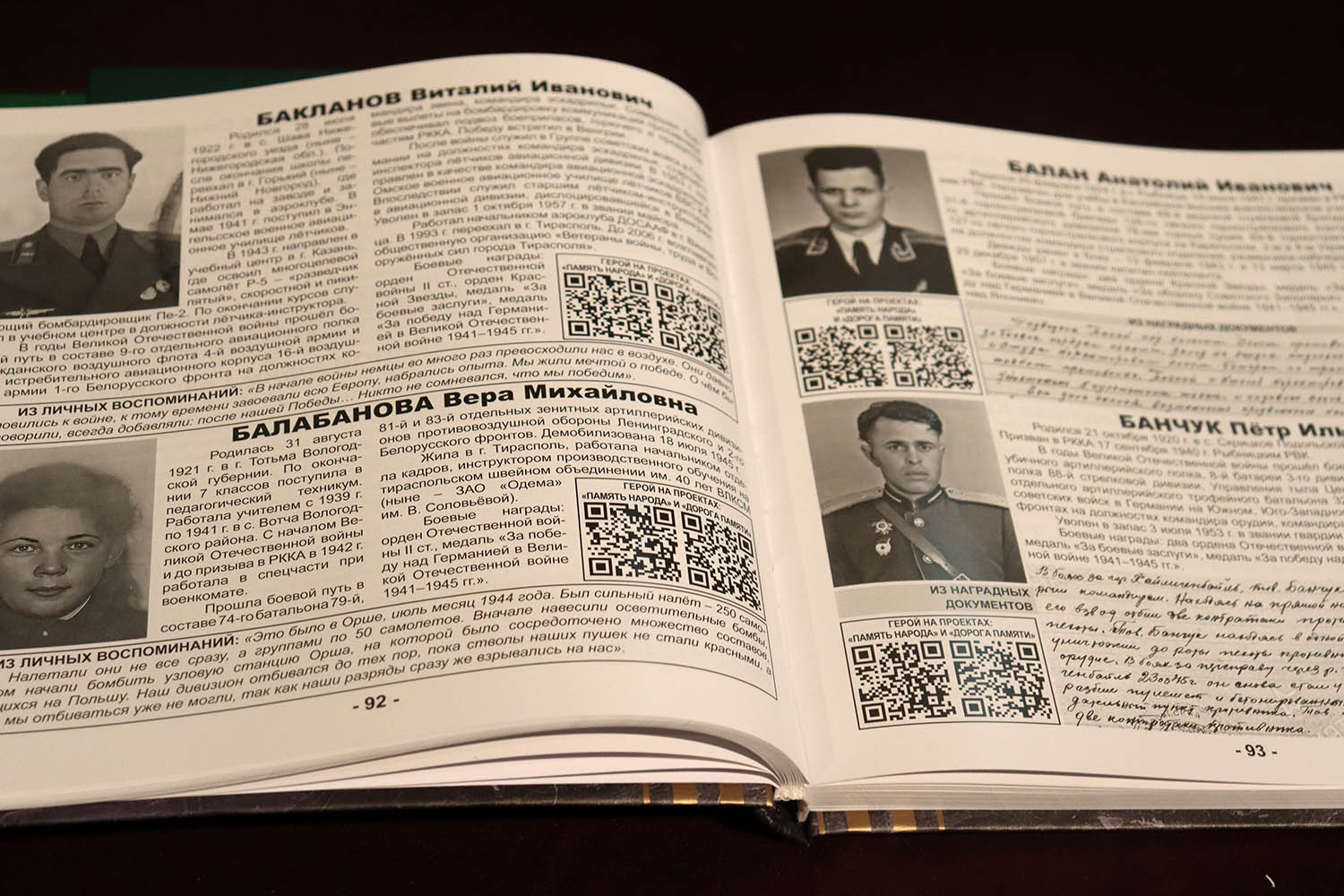 Как сообщил на презентации ответственный редактор Александр Березовский, большой вклад в информативное наполнение печатного и электронного издания внесли представители ветеранских организаций, сотрудники музеев, историки, краеведы и, далеко не в последнюю очередь, родственники героев.
