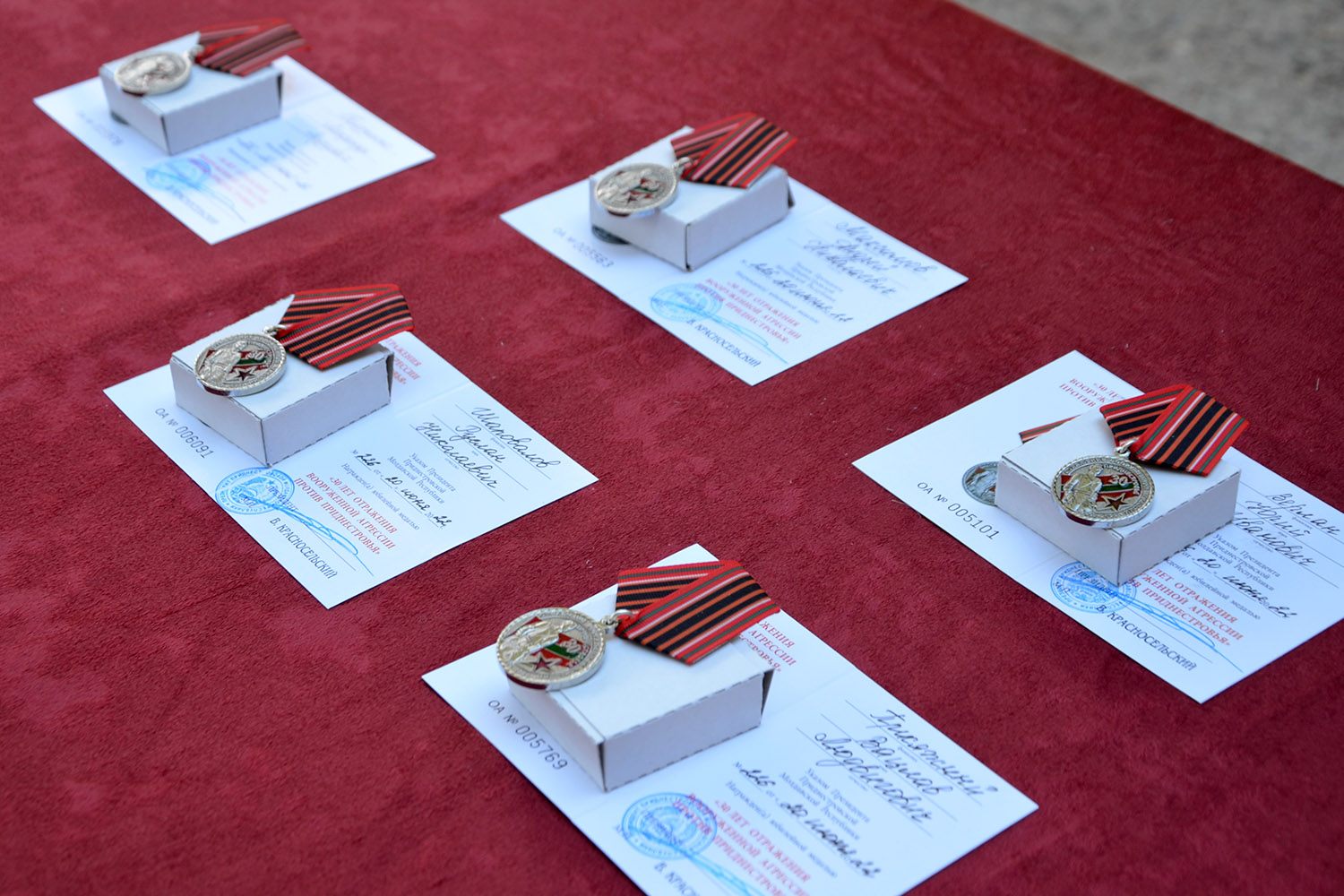 Стоявшим у истоков создания Приднестровской Молдавской Республики, активно участвовавшим в ее строительстве, отстаивании интересов жителей молодого государства, его свободы и независимости вручают юбилейные медали «30 лет отражения вооруженной агрессии против Приднестровья».