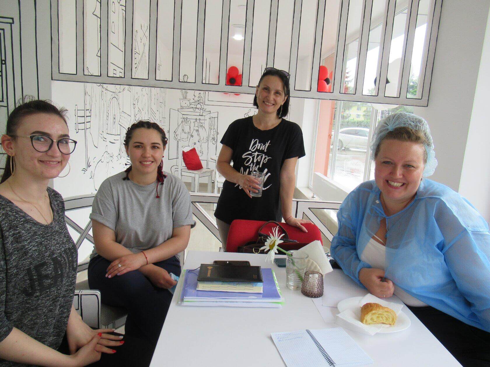 На фото: менеджер Алиса Данилеску, пекарь Лилия Корня, управляющая Инга Маматюк и наставник Инна Линник.