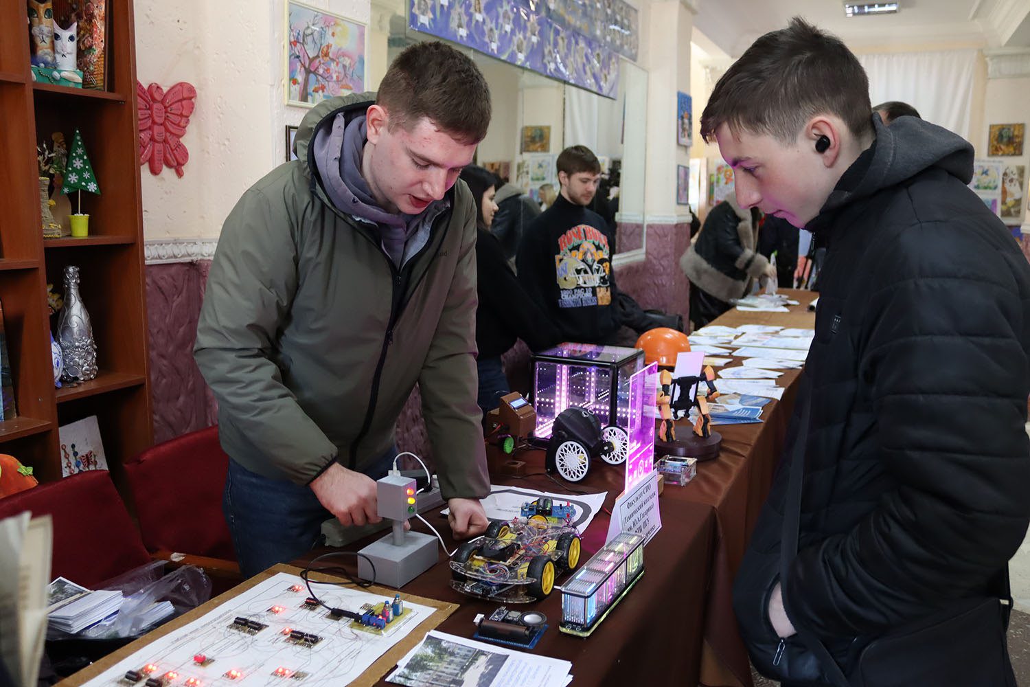В фойе ДДЮТ развернулась своеобразная карта профессий: каждое учебное заведение представило свою «точку притяжения» с буклетами, наглядными материалами и, главное, с людьми, готовыми рассказать о будущей специальности не сухо, а с интересом и вовлечённостью. После выставки общение продолжили в зале, где для школьников подготовили презентации и видеоролики о профессиях, чтобы можно было не только услышать, но и увидеть, как выглядит та или иная сфера изнутри.