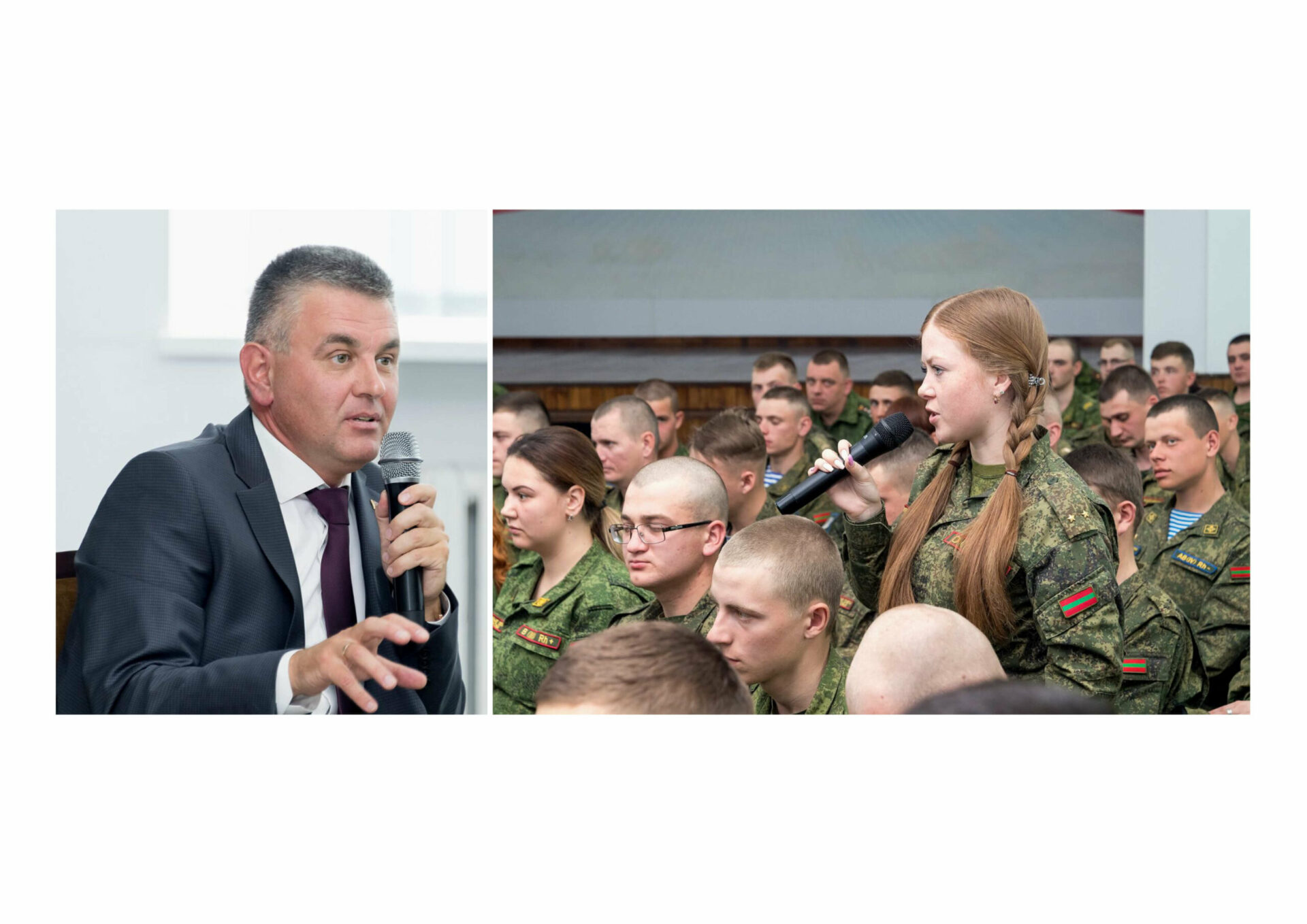 В актовом зале ТСВУ и состоялась встреча Вадима Николаевича с военнослужащими различных подразделений, курсантами Военного института и суворовцами (всего их собралось порядка 170 человек). Общение проходило в формате «вопрос – ответ». Представителей Вооруженных сил интересовали как проблемы армии, так и социальные и личные вопросы. Например, был задан вопрос о повышении денежного довольствия армейцев – оно относительно хорошее, но подчас недостаточное.