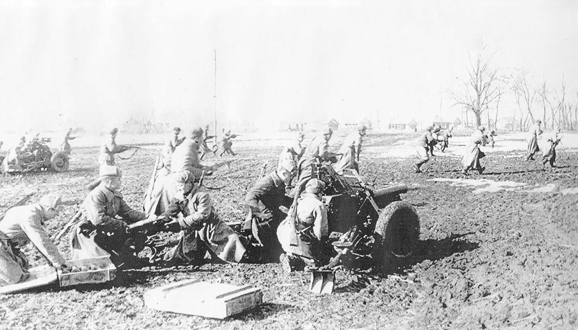 Бойцы подразделения Кугушева на окраине Тирасполя. Утро 12 апреля 1944 года.