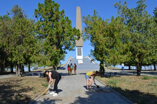 Участники акции побелили бордюры, собрали мусор и сухую траву. Такое мероприятие в преддверии празднования важной исторической даты проводится уже не первый год.  «Августовский субботник стал традицией. Мы приходим сюда, чтобы облагородить памятное место, молча постоять у обелиска, полюбоваться видами, открывающимися с высоты», – рассказали молодые люди. По словам лидера партии «Обновление», заместителя Председателя Верховного Совета  Галины Антюфеевой, такие акции помогают ребятам узнавать историю своего края. Заведующая музеем Ясско-Кишиневской операции села Кицканы Виолетта Бедрос подробно рассказала молодёжи об этой странице Великой Отечественной войны. Блистательные «Ясско-Кишиневские Канны», один из десяти «сталинских ударов», приблизили Великую Победу, вошли в историю военного искусства. За полторы недели советским войскам удалось разгромить более чем миллионную группировку немецко-фашистских и румынских войск, прикрывавших Балканское направление, и двинуться дальше. По информации пресс-службы РП «Обновление», Виолетта Бедрос много лет ведёт своеобразную летопись – собирает данные о жителях села Кицканы, которые участвовали в освобождении края, а затем восстанавливали его: «В числе участников Ясско-Кишиневской операции – жители нашего села, около 70 человек. Многие не вернулись – погибли при освобождении родного края, стран Европы от фашистов. Мы это помним. Ради этого строили и наш величественный памятник: он возведен в 1972 году на средства колхоза-миллионера «Красный садовод» села Кицканы».