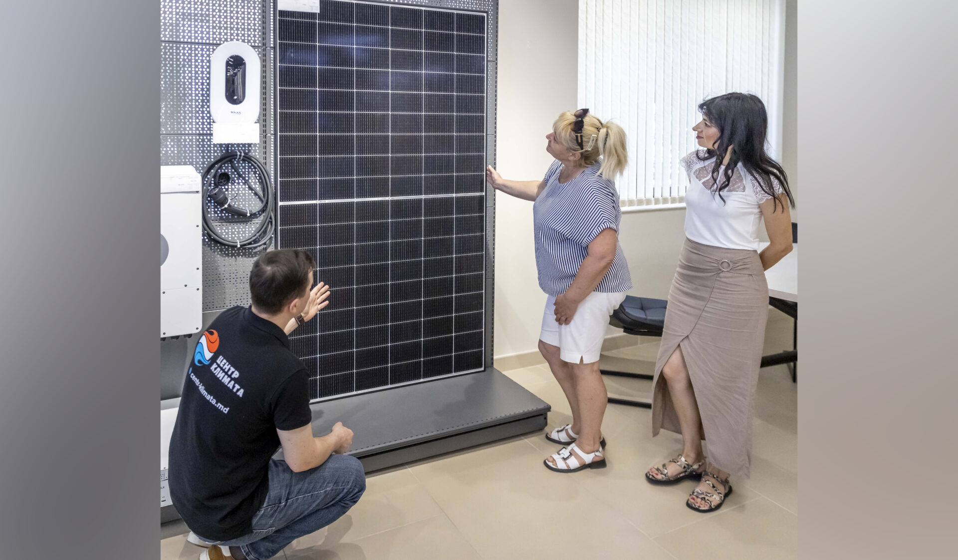 Так как дело было абсолютно новым, перед тем как заключать контракты на поставку соответствующего оборудования, руководство «Торгового Проекта» («Центра Климата») решило в марте этого года съездить в Амстердам, где проходила всемирная выставка, посвящённая альтернативной, или, как её ещё называют, зелёной энергетике. Голландия имеет очень большой опыт её применения. Почти все солнечные панели производят в Китае, где выпускают и инверторы (преобразователи), аккумуляторы. Но выставки проводят там, где постоянные клиенты. «На экспозиции наладили контакты, пообщались с поставщиками, выбрали наиболее подходящих, – рассказал Сергей Поезжаев. – Мы не завозим оборудование из Молдовы или Украины. Мы работаем с крупными дистрибьюторами. Например, такая известная китайская компания, как Huawei не работает с отдельными странами – у них есть один дистрибьютор на всю Европу».