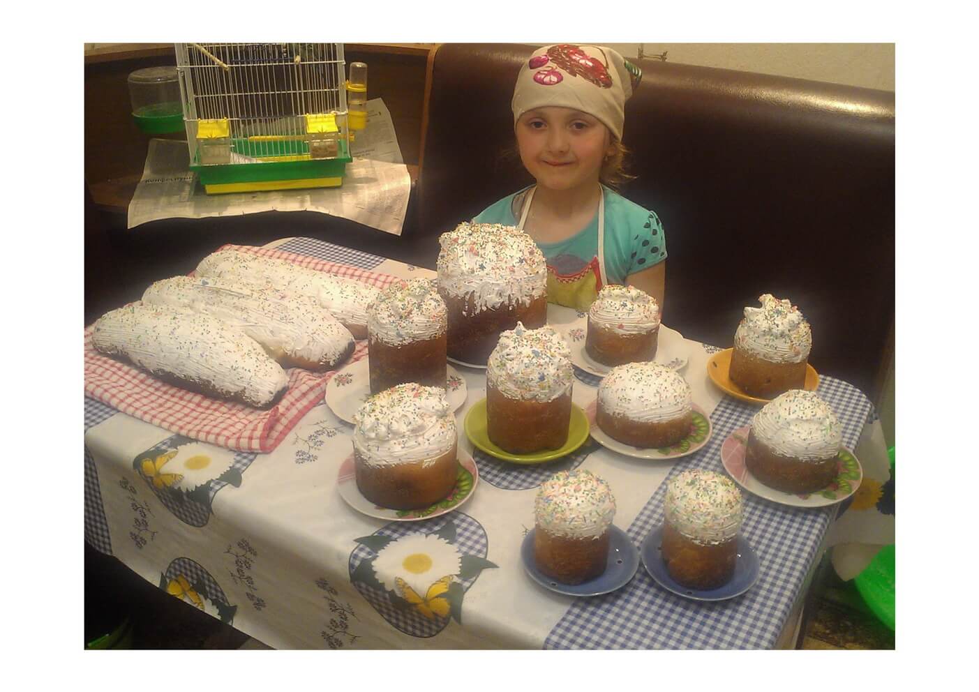 Я стараюсь передавать эти традиции доченьке. Как она ждет этого дня, чтоб создавать свои произведения искусства на верхушке куличей, обязательно вымазывав курносый носик и ручки белой глазурью. В этом году с нами будет еще один юный помощник – семимесячная Елизавета.