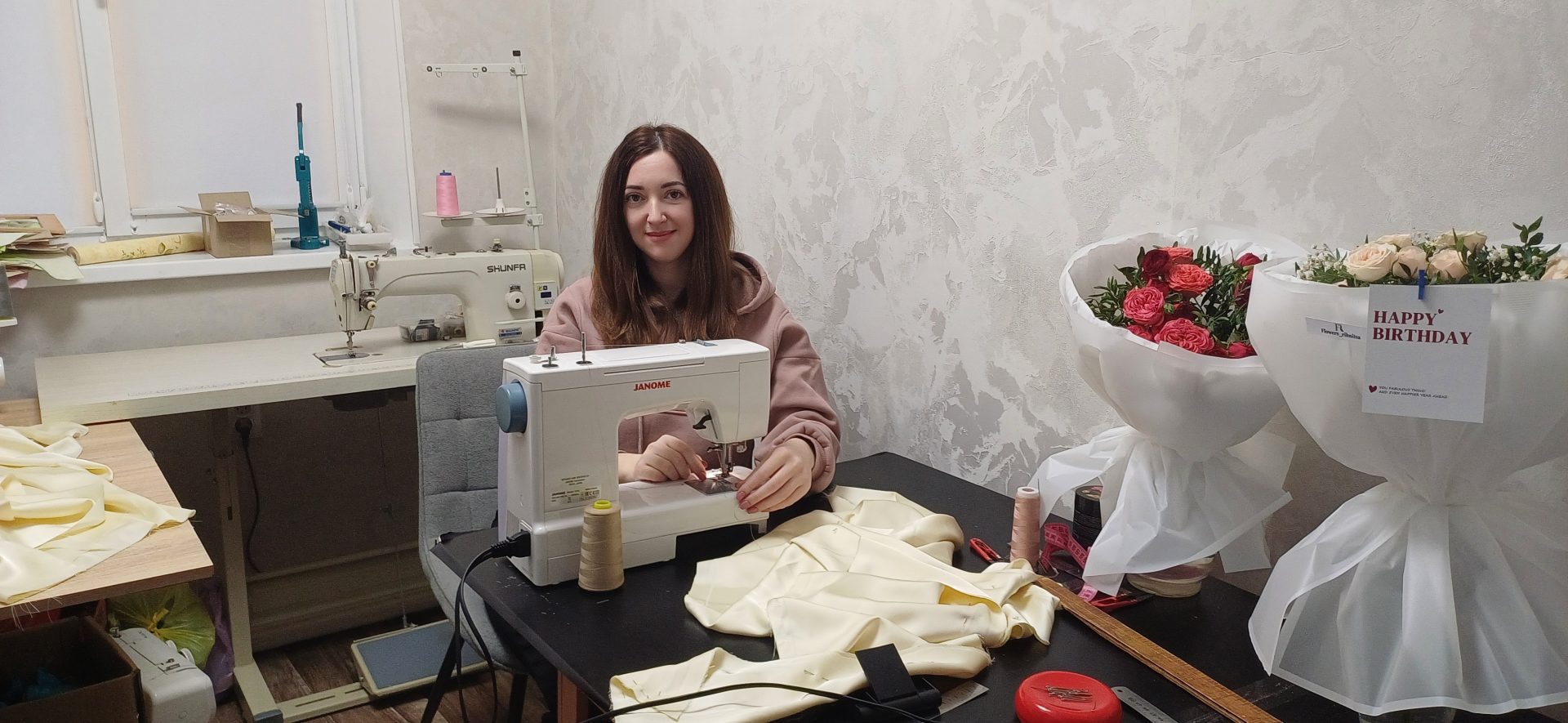 Рыбница, улица Кирова, 97 – тихий, ничем не примечательный дом. Но в одной из квартир жизнь течёт по особому ритму. Посреди комнаты на столе – ткань, рассыпанная фурнитура, в углу мерцают блёстки от вечернего платья. В столовой, где каждая машинка на своём месте (распошивальная, оверлок, четырёхниточная промышленная), рождаются не просто вещи. Здесь создаются истории.