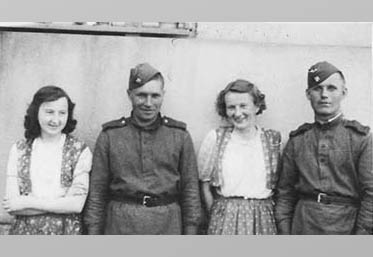 В этот день на очень короткое время, на два часа, командир роты разрешил мне и сослуживцу Николаю Уральцеву выйти в город. И вот к нам подходят две девушки (на вид сёстры), лет по 17-19, и просят разрешения сфотографироваться. С фотоаппаратом был их старший брат. Сфотографировавшись, они позвали нас с собой в маленькое кафе и скромно угостили. Через два часа мы с Уральцевым были в роте. А Злата Прага ликовала, хотя в отдельных районах, в лесах, шли ожесточённые схватки с недобитым врагом. И 9 мая гибли наши солдаты. Кстати, поразило максимально враждебное отношение жителей Праги к пленным немцам. Люди готовы были их растерзать, бросали в них всё, что попадало под руку. Наш конвой их просто спасал».