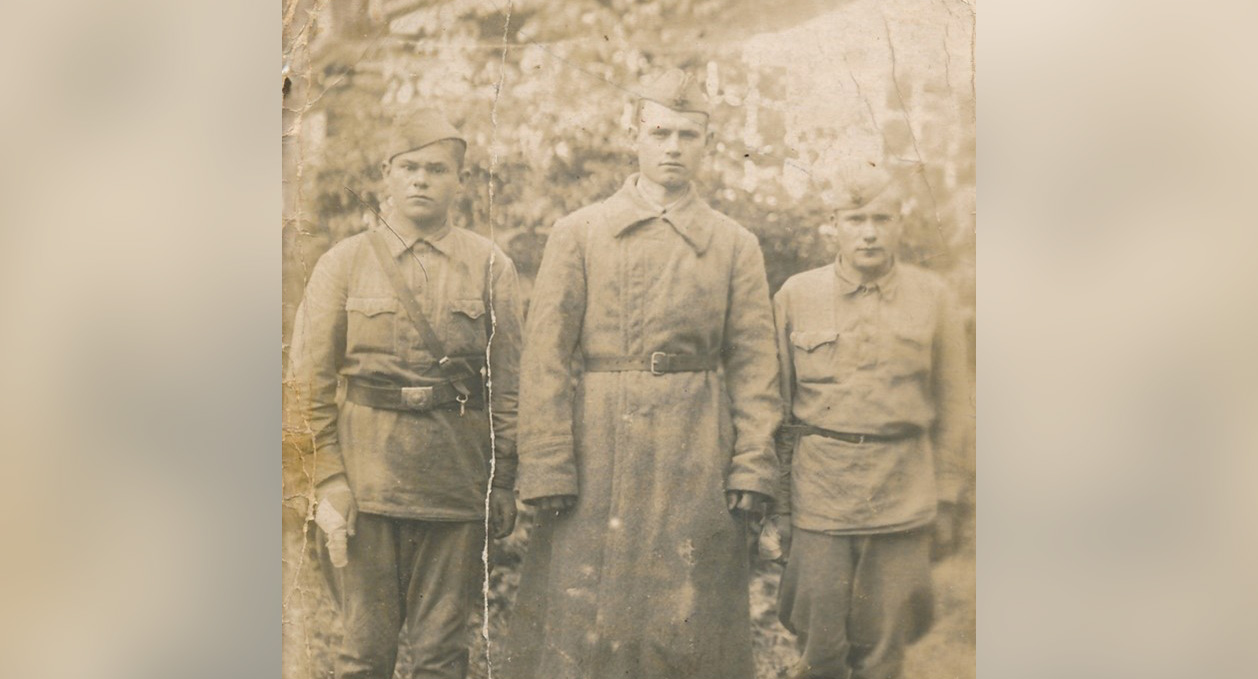 На фотографии Пётр Моисеевич (в середине) сфотографирован с красноармейцами в 1941 году.